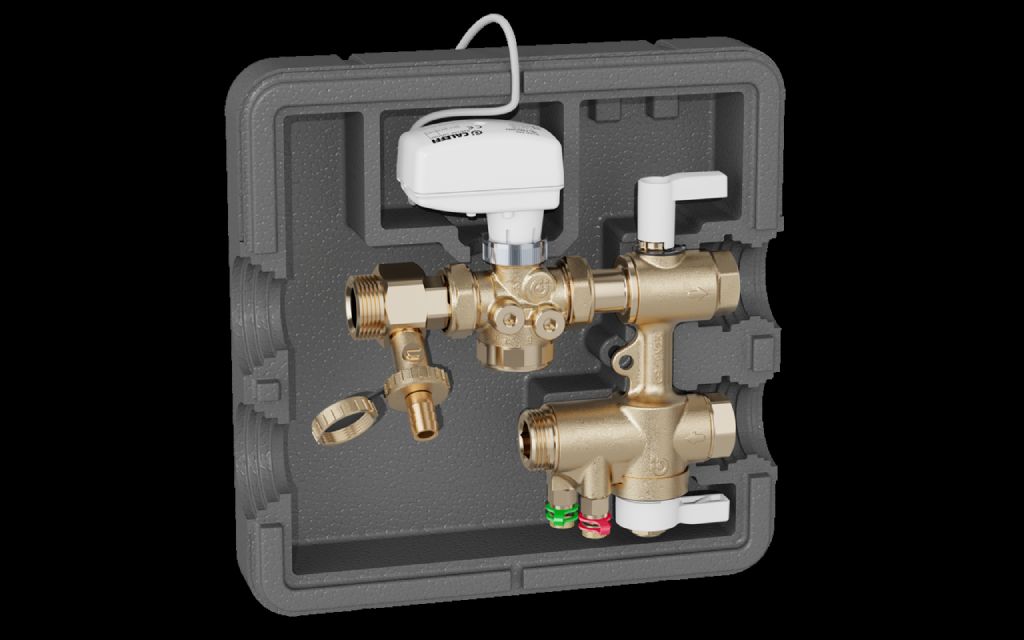 In hotels en kantooromgevingen worden steeds vaker watergevoerde systemen voor verwarming en koeling toegepast. Deze systemen op de juiste manier aanleggen, inregelen, naregelen en onderhouden, is geen sinecure. Om een terminal unit aan te sluiten, moeten installateurs al gauw 20 verbindingen maken. Van de afsluiters tot en met de T-stukken, venturi, drukgecompenseerde regelafsluiter en de filter. Met de Caleffi terminal unit aansluitkit serie 149 wordt dit aantal gereduceerd tot slechts 4.