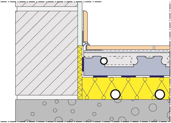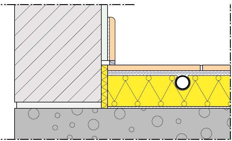 Zowel bij de innovatieve als de traditionele vloerverwarmingssystemen, dient er over de volledige omtrek en tegen elk vast bouwelement (bv. kolommen) een randstrook voorzien te worden. Deze moet minstens tot aan de afgewerkte vloer reiken en mag pas na de plaatsing van de vloertegels afgesneden worden zodat elk contact tussen de vloertegels en de wand vermeden wordt. Tussen de isolatie en de dekvloer moet tevens een membraan geplaatst worden dat tot boven de randstrook strekt (zie afbeelding 1).