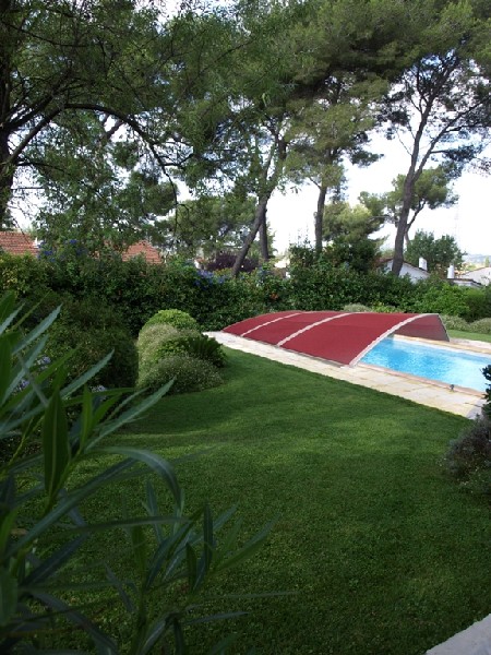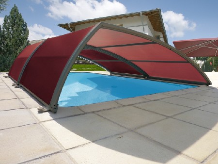 Met de Tech-Style-overdekking wil Abrisud bewijzen dat zwembadoverdekkingen ook een opvallend decoratief element in de tuin kunnen zijn. Met zijn kardinaalrode kleur harmonieert de Tech-Style met de tuindecoratie en geeft het zwembad een extra cachet. Het gepatenteerde textiel werd speciaal ontwikkeld voor zwembaden. Het materiaal wordt ook gebruikt door het leger en voor vele industriële toepassingen. Het doek met microperforaties is bestand tegen chloor, algen, uv-stralen en vlekken, zodat een lange levensduur gegarandeerd is.