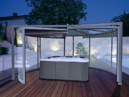Tot vandaag beperkte Abrisud zich tot zwembaden, maar nu lanceert het merk een innovatie in een totaal andere categorie: panoramische overdekkingen die het tuinsalon of jacuzzi een extra dimensie kunnen geven. Voor de vormgeving liet Abrisud zich inspireren door de natuur. De structuur is rond en bestaat uit brede modules en spiraalvormige, uitschuifbare delen. Deze nieuwe overdekking doet denken aan de vorm van een schelp, een nautilus. Zijn transparante vormgeving, afwerking ‘kristal’, schuift even vlot open als dicht: om te genieten van de zon of je net te beschutten tegen een fris briesje of een bui… De panoramische overdekking kan ook dienst doen als miniveranda en wie houdt van wellness en relaxatie, kan onder de panoramische overdekking ook een buiten-jacuzzi kwijt. Op die manier is dit Abrisud product een oplossing om 365 dagen per jaar van de tuin te genieten, weer of geen weer.