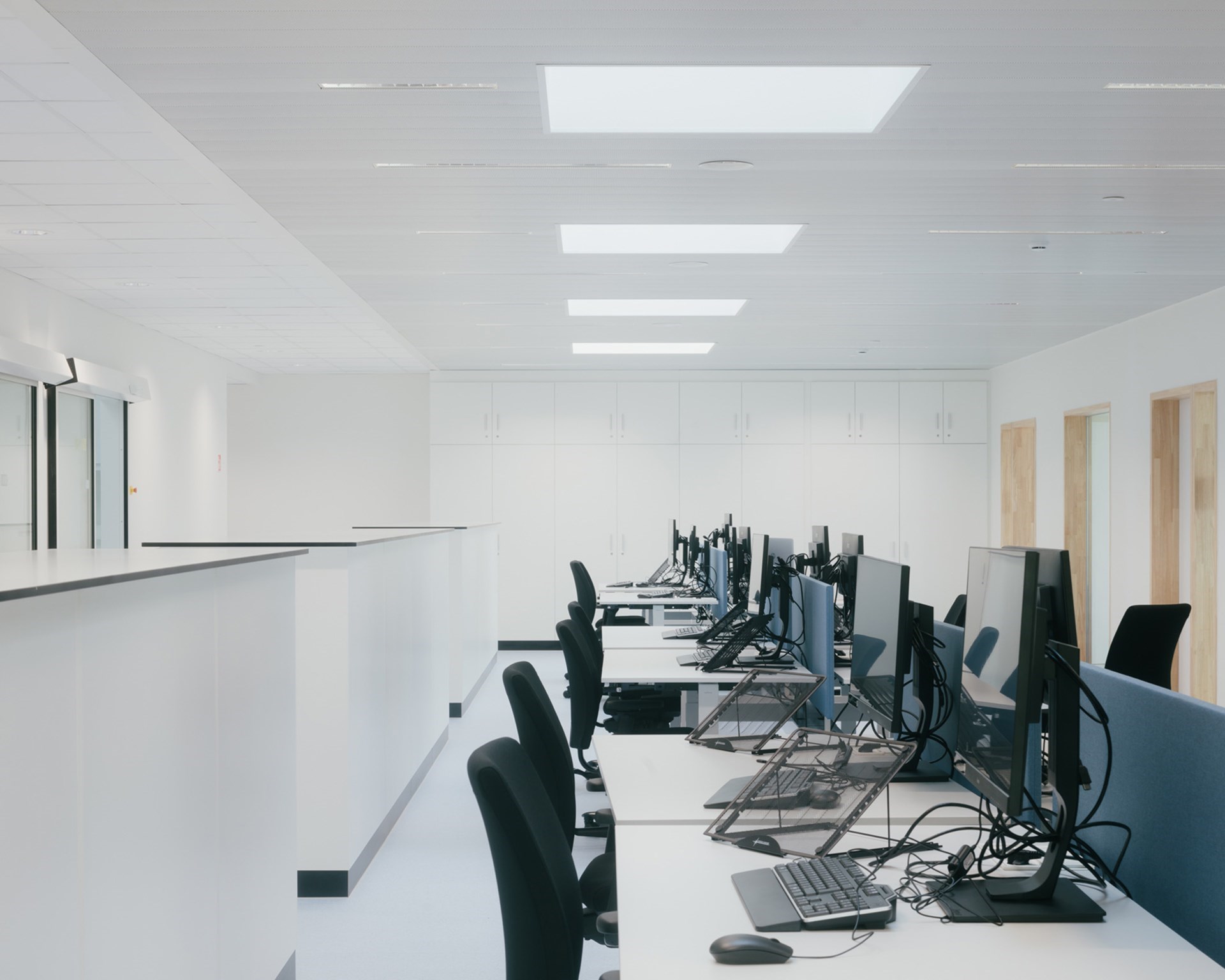 De werkplekken zijn volledig toegankelijk en ergonomisch ingericht, afgescheiden van de koffiehoek en informele ruimten. Wie daar nood aan heeft, kan zich terugtrekken in de prikkelarme afgesloten werkplekken. Elke verdieping heeft een rolstoeltoegankelijk toilet.