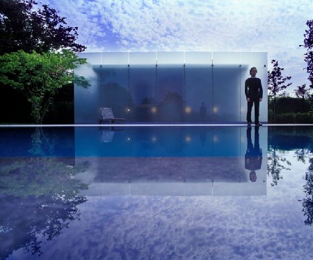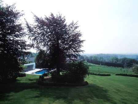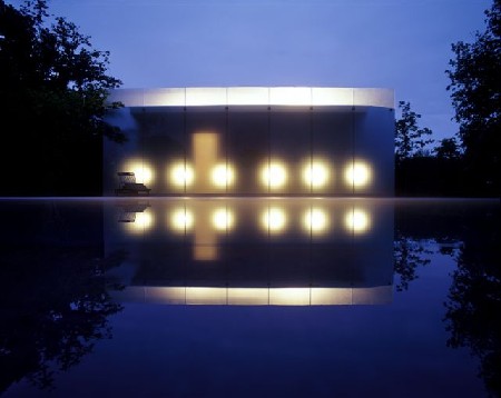 In Asse onderwierp Lens Ass een bestaande woning aan een grondige opsmukoperatie en voor het poolhouse trok hij de gevolgde lijn consequent door. Een halfdoorzichtige glazen wand gecombineerd met indirecte verlichting zorgt vooral 's avonds voor een sfeervol lichtspektakel.
