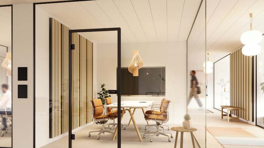 De combinatie van natuurlijke elementen en een akoestische oplossing: Rockfon® Lamella