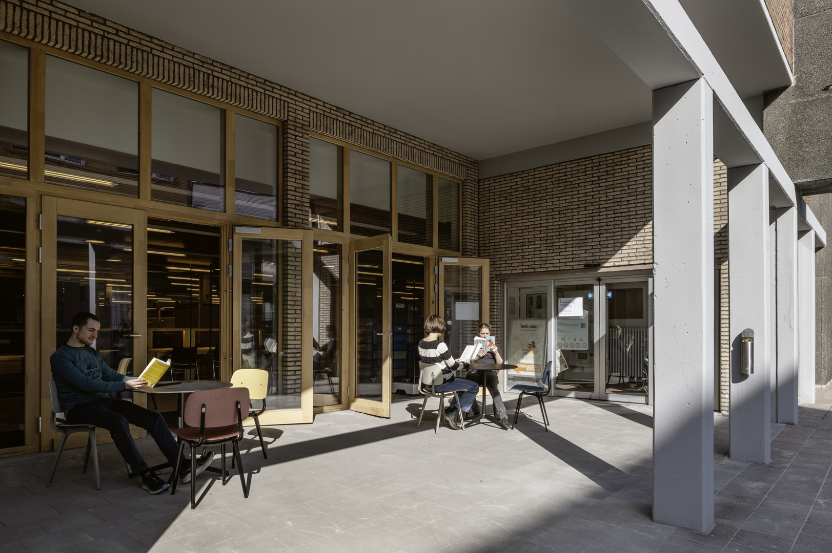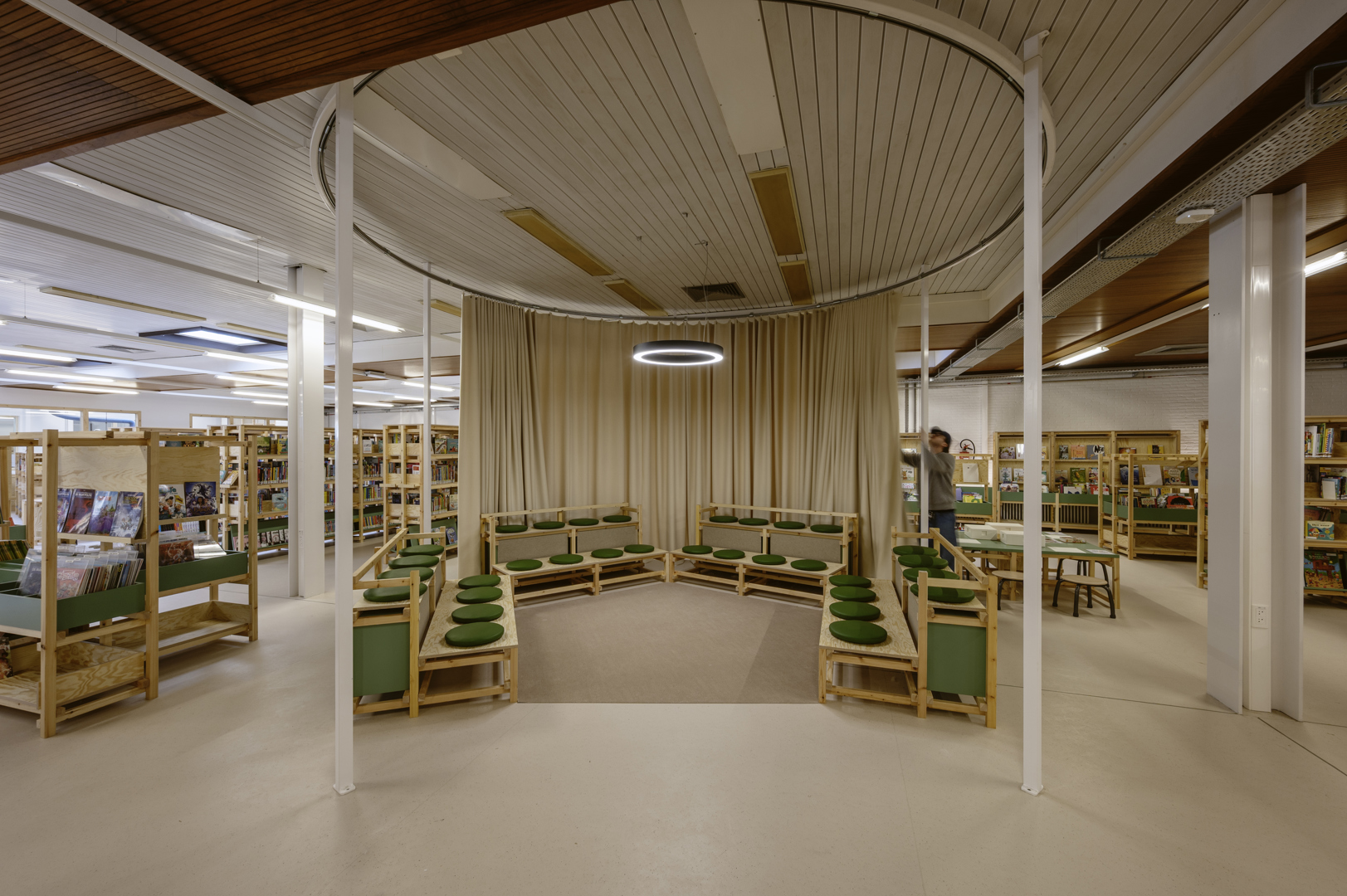 Interieur bibliotheek Hoboken circulair gerenoveerd naar ontwerp van ROOILIJN architectuur