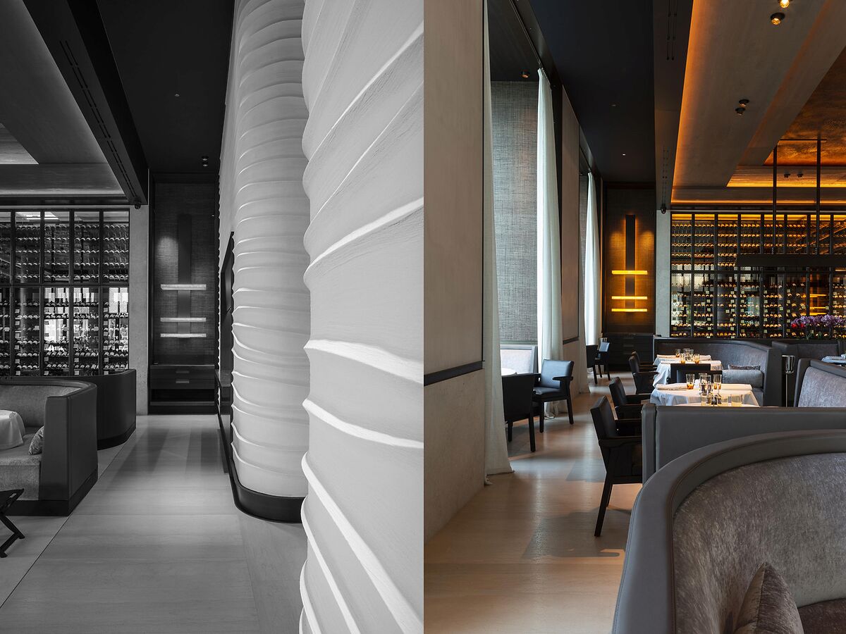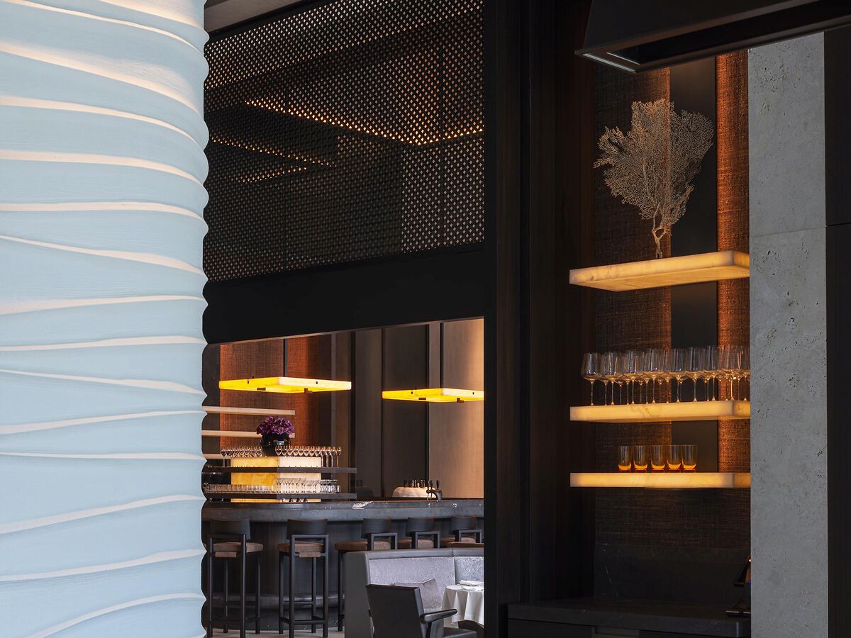 De fijn afgestemde interieurs van het hotel zijn voorzien van een bijzondere mix van zowel door Sestig op maat gemaakte items en ingekochte stukken van ontwerpers zoals Jean-Michel Frank en Christian Liaigre. Oppervlakken op maat, zoals een serie handgemaakte, sculpturale muurreliëfs die zandformaties aan het strand nabootsen en op maat gemaakte geweven metalen panelen die als ruimteverdelers fungeren, hullen alles in een sfeer van hoge ruimtelijke verfijning.
