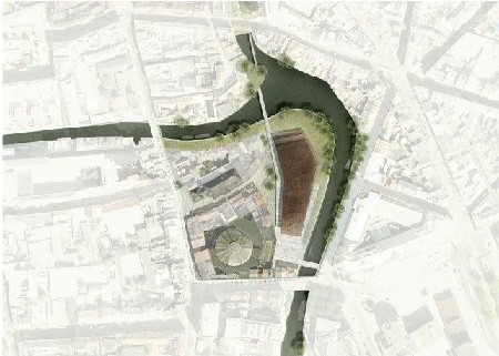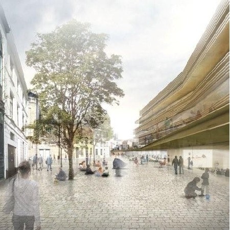 Het complex, waarvan de bouw nog een paar jaar in beslag zal nemen, zal een zeer horizontale constructie worden, opgebouwd uit verschillende niveaus met elk hun eigen functie. De nieuwbouw (waar de Bibliotheek van de Toekomst en het Centrum voor Nieuwe Media gevestigd zullen zijn) zal een ‘kreuk’ bevatten, waardoor het gebouw zich perfect plooit naar de glooiende gang van de Schelde.