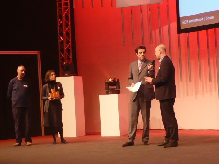 RCR Arquitectes (Ramon VILALTA, Carmen PIGEM et Rafael ARANDA) uit het Spaanse Girona realiseerde onder meer de Sant Antoni-Juan Oliver bibliotheek in Barcelona en was in 2009 één van de 10 finalisten van de Mies van der Rohe Award, een tweejaarlijkse EU-prijs voor hedendaagse architectuur. De International Award winnen RECR Arquitectes vooral voor hun ontwerp op de site van de Waalse Krook in Gent, inclusief ‘Bibliotheek van de Toekomst’ en een ‘Centrum voor Nieuwe Media’. Vandaar ook dat de Gentse schepen Tom Balthazar aanwezig was om de prijs uit te reiken.