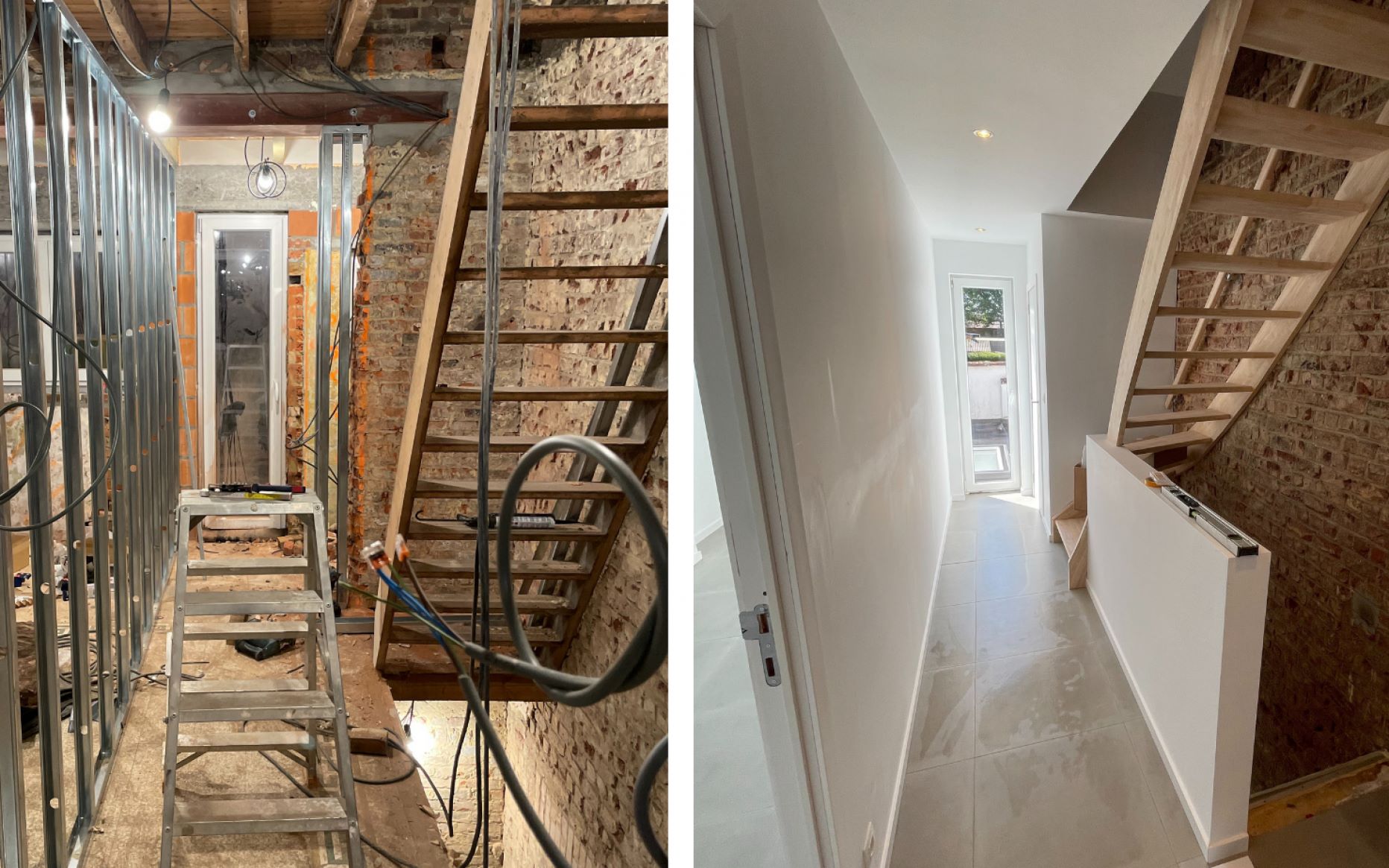 “In het renovatietraject werken we een voorstel uit op maat: wij gaan op zoek naar aannemers, analyseren de offertes en spreken dan alles door met de eigenaars. Als zij akkoord gaan dan starten we de werken en volgen we die ook volledig op. De eigenaar wordt zo eigenlijk volledig ontzorgd.”