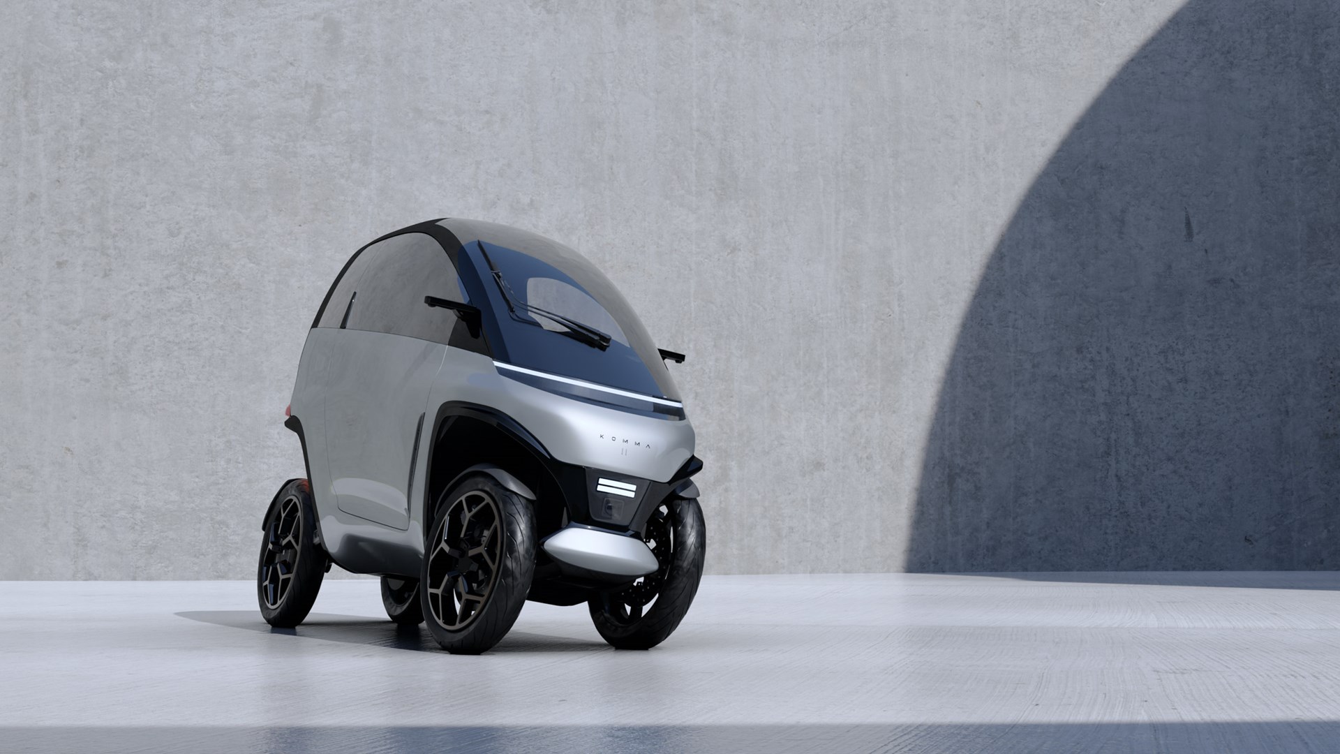 "Het verplaatsen van een persoon van 80 kilo met 2,5 ton materiaal is niet iets wat we moeten beschouwen als het beste dat we kunnen doen, vooral niet in een stedelijke omgeving," zegt Lowie Vermeersch. De oprichter van Granstudio heeft eerder het ontwerp geleid van de Ferrari FF en 458 Italia toen hij ontwerpdirecteur was bij Pininfarina, en heeft gewerkt aan het concept van de Maserati Birdcage 75th. Zijn nieuwste project Komma, dat hij bedacht samen met oprichter en CEO van Punkt, Petter Neby, heeft een veel kleinere footprint. Het is een overdekt, elektrisch tweezitsvoertuig met autostoelen maar een smalle breedte als een motorfiets, ontworpen om minder ruimte op de wegen in te nemen en minder materiaal te gebruiken bij de productie.