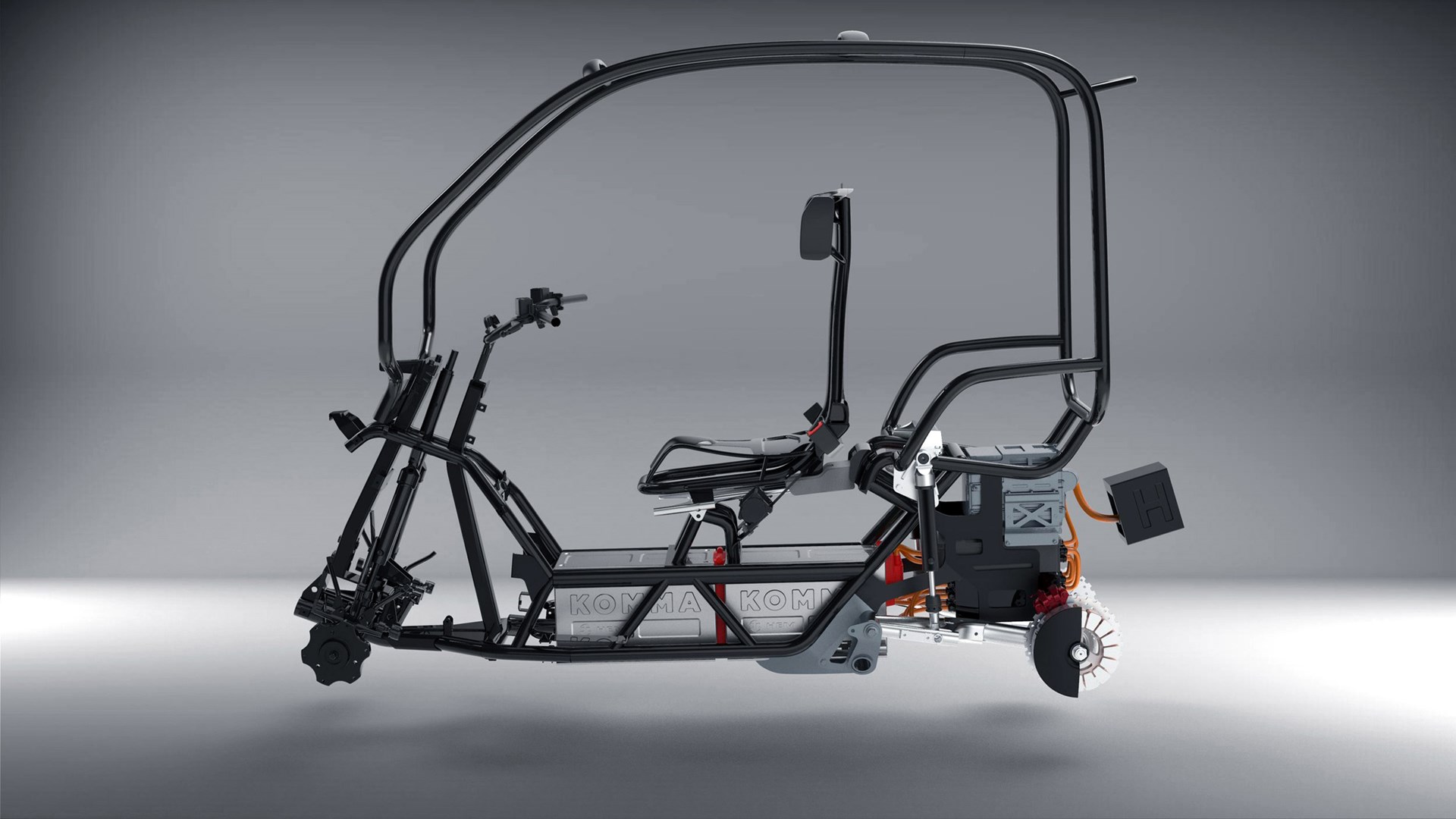 Vermeersch zegt dat Granstudio het voertuig vanaf de grond heeft ontworpen om te profiteren van de "geometrische vrijheid" die elektrische aandrijflijnen bieden, waardoor de motor vrijwel verborgen kan worden in het wiel in plaats van de indeling van het voertuig te vormen. Om het gewenste element van plezier toe te voegen aan de rijervaring, is er koppelvectoring op de wielen voor verbeterde grip. En de semi-open versie van Komma heeft een motorfietsachtige bediening gekregen, met een stuur en een kantelmechanisme op de wielen.