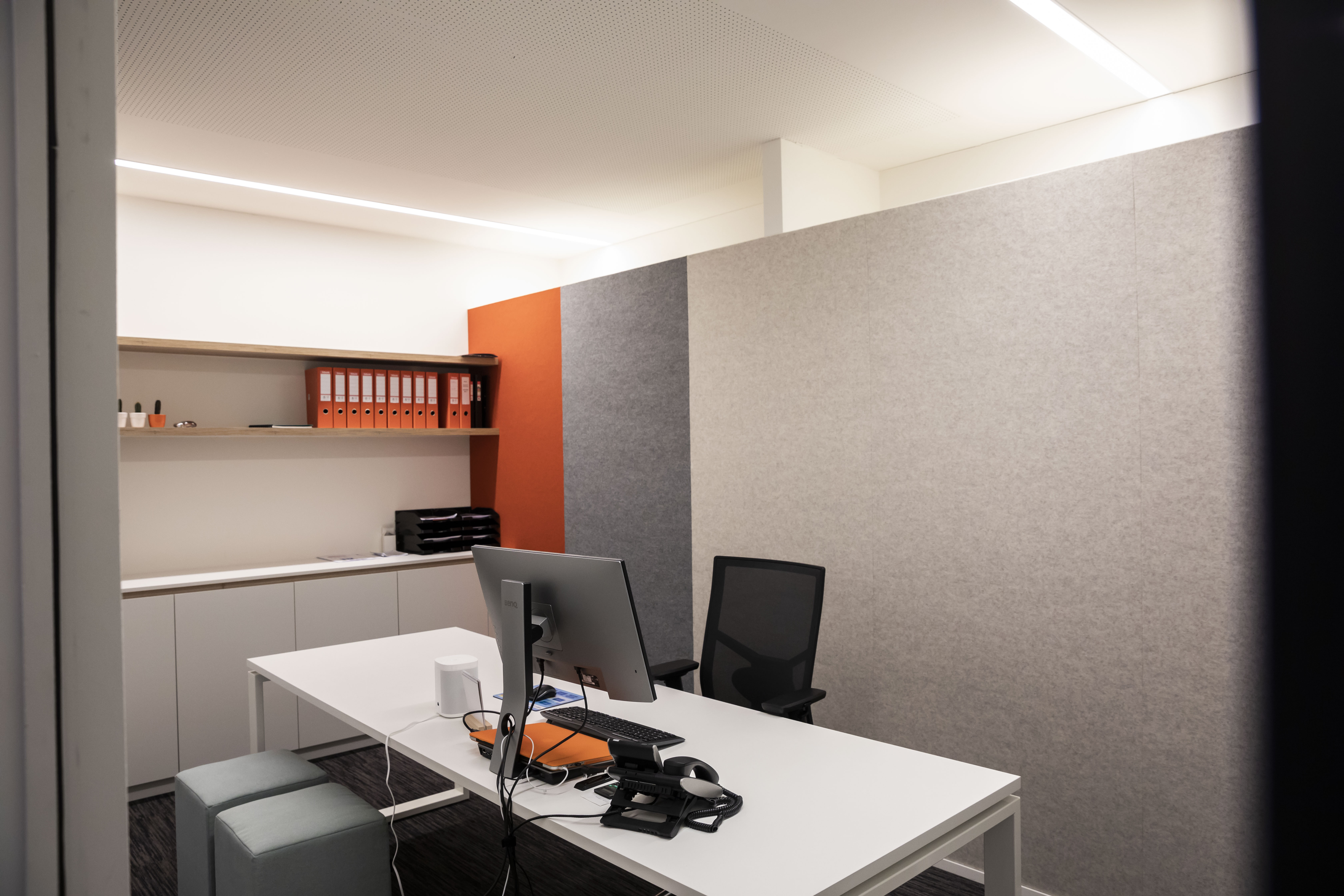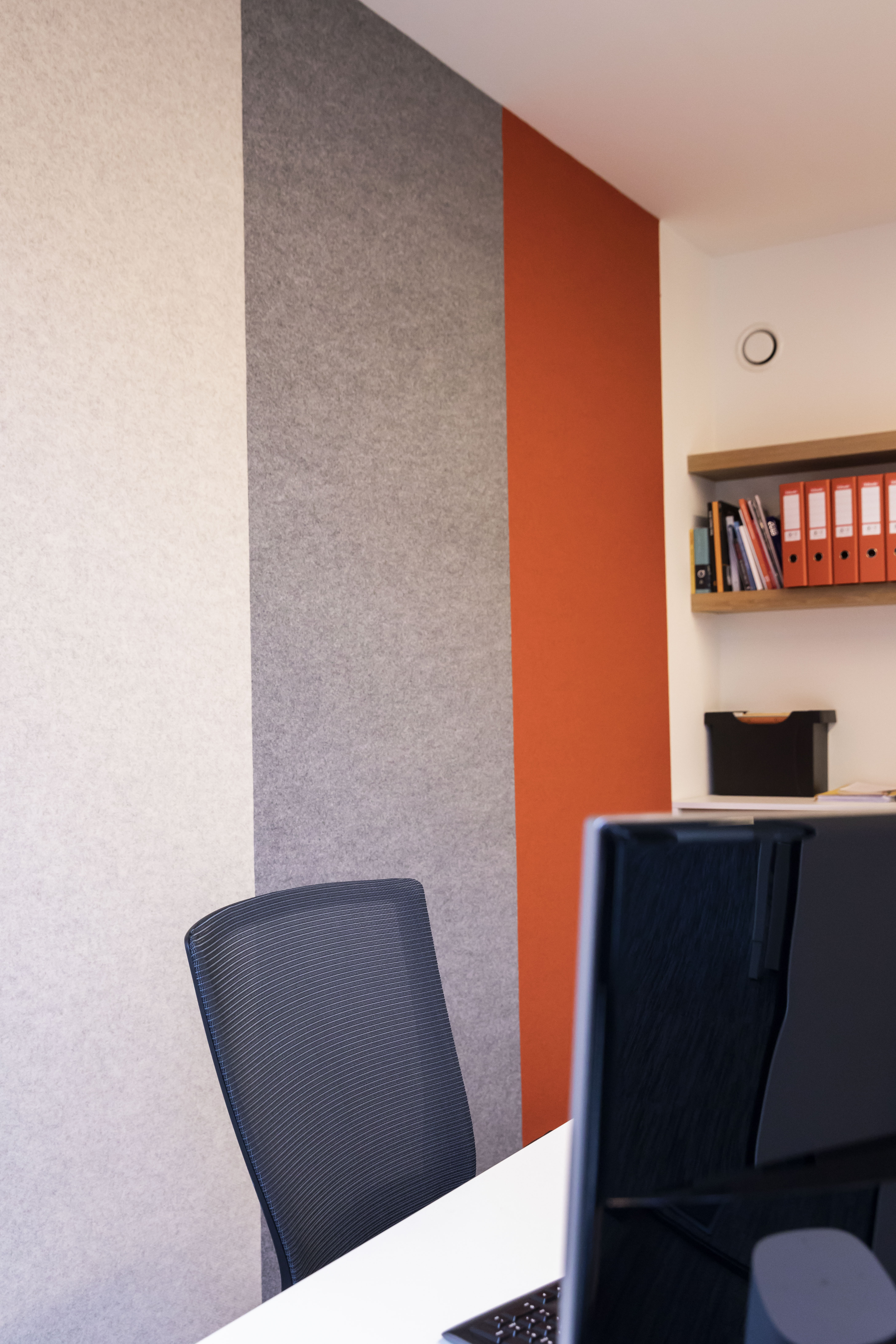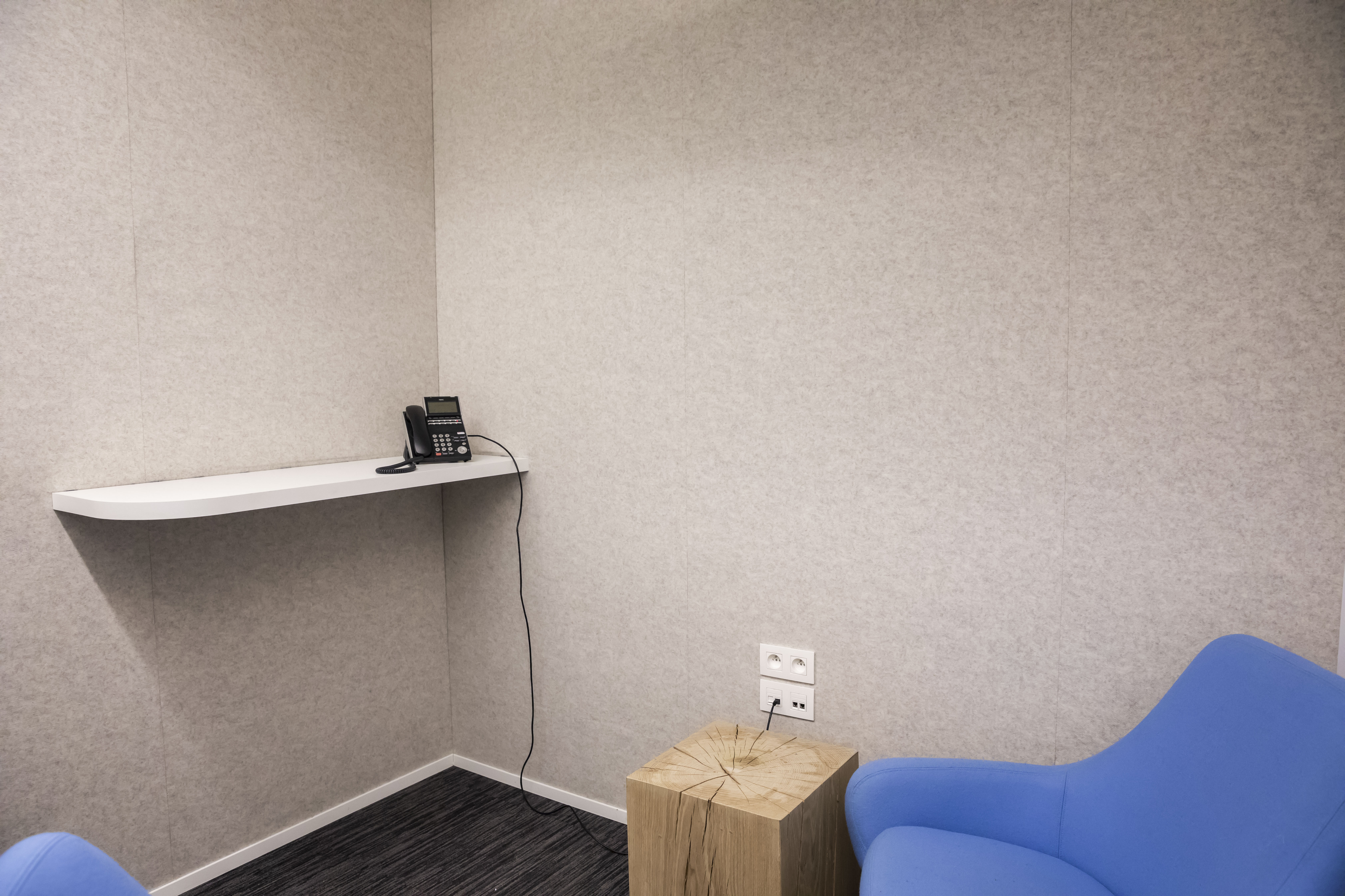 De uitdaging van Belisia lag in dit project in het akoestisch optimaliseren van een relatief kleine werkplek voor acht personen. Samen met een verbetering van de akoestiek, moest de ruimte ook subtiel aangekleed worden, met de nadruk op warmte, sfeer en huiselijkheid. Op akoestisch vlak werd onder andere gekozen voor plafondschuiven die vrij hangen in de ruimte, een pillowwal die akoestiek en esthetiek mooi combineert en akoestische (glas)gordijnen.