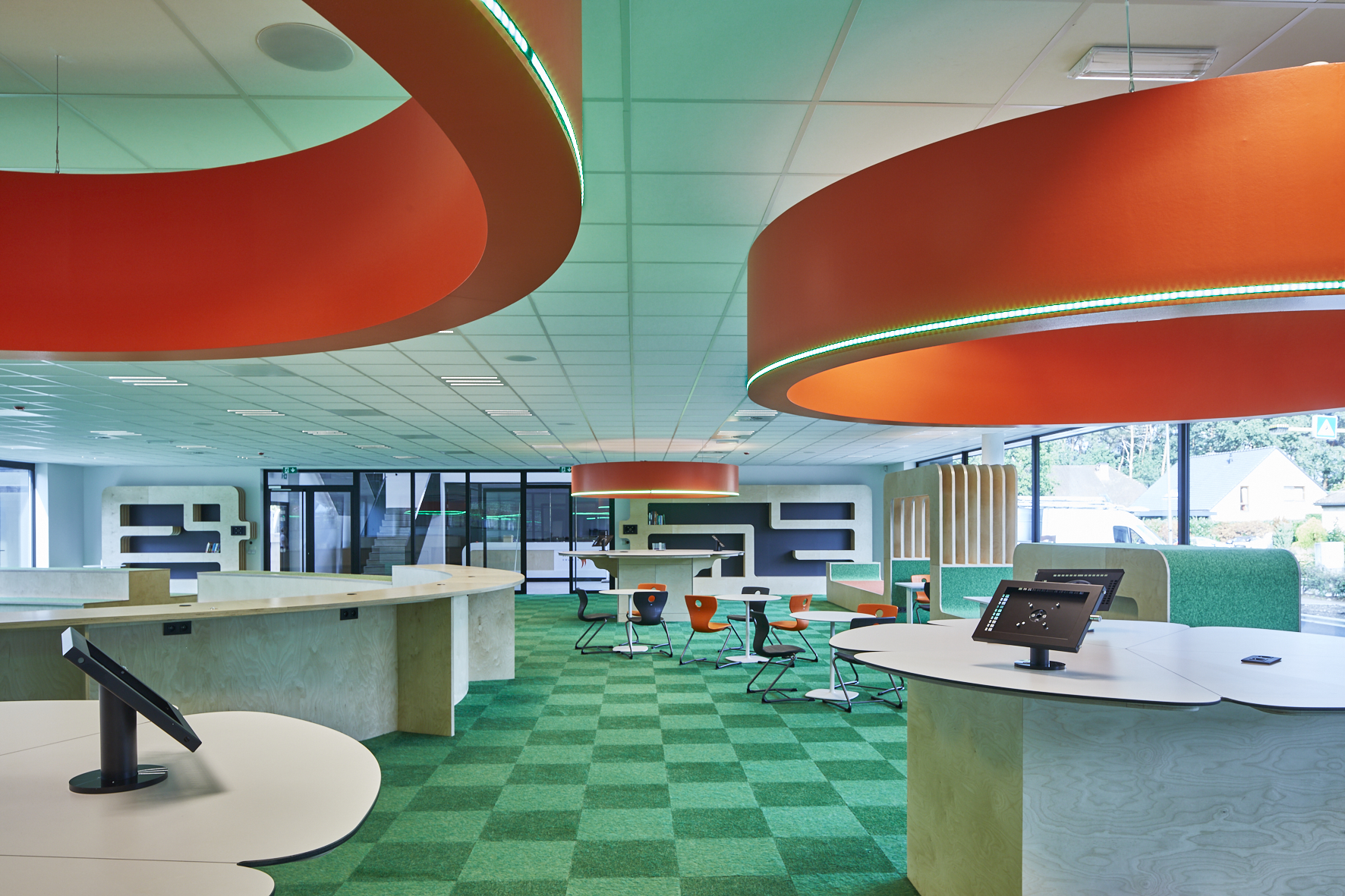 De belangrijkste uitdaging vond Deusjevoo in het voldoen aan de wensen van de zeer diverse doelgroepen. Leerlingen van 12 jaar tot en met 18 jaar, leerkrachten, directie, raad van bestuur, ouders,… “Het is een project waarbij we dan ook alle doelgroepen hebben betrokken door hen online te bevragen naar hun wensen en noden”, klinkt het bij Deusejvoo. “De resultaten van het onderzoek brachten aan het licht dat de drie doelgroepen veel belang hechten aan communicatie, optimaal samenwerken, een goede concentratie en recuperatie van de leerlingen en de leerkrachten. Met deze informatie ging het team aan de slag en dat resulteerde in een revolutionaire schoolomgeving waarbinnen elk jeugdig talent zich maximaal kan ontwikkelen.”