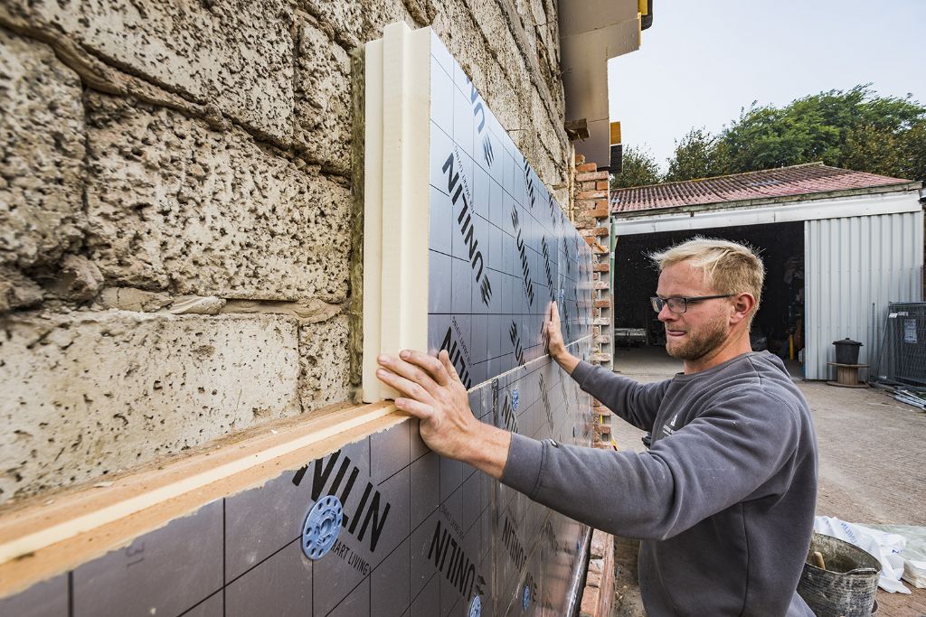 Dankzij het laagje minerale wol in de platen creëer je bij oudere muren een ononderbroken isolatieschild. Voor de woning van Isfried werd 10 cm isolatie geadviseerd, maar hij koos voor isolatieplaten van 12 cm om zeker aan alle huidige – en toekomstige – eisen te voldoen.