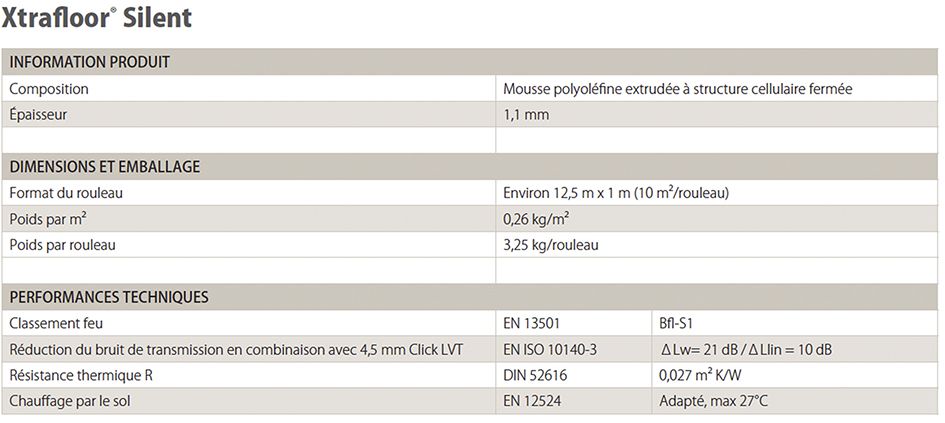 Xtrafloor® Silent is geschikt voor combinatie met vloerverwarming en –koeling. Naast het akoestisch comfort wordt de thermische isolatie van de vloer extra versterkt. Dankzij de antisliplaag voor zwevende installaties kunnen de vloer en ondervloer in een handomdraai worden geïnstalleerd én verwijderd, ideaal dus voor renovaties of opwaarderingswerken.