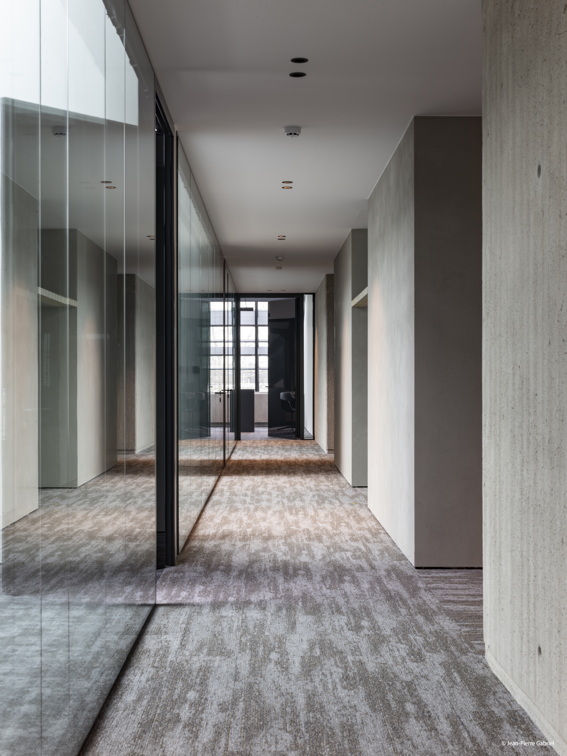 De buitenrenovatie hield diverse esthetische uitdagingen in, maar binnenin moest vooral afgerekend worden met een groot functioneel probleem. “De verwarming vormde al van bij de constructie van het gebouw een pijnpunt”, licht Glenn Sestig toe. “Door de vele open balkons aan de binnenkant steeg de warmte zeer snel naar boven. Op het gelijkvloers zaten medewerkers en bezoekers dus te klappertanden, terwijl het boven een sauna was. Bij eerdere renovaties probeerde men daar tevergeefs iets aan te doen door de balkons af te sluiten met bouwplaten. Nadat we de opties hadden bekeken met onze engineeringpartner, beslisten we om de balkons afgesloten te houden voor een betere akoestiek en vloerverwarming te leggen.”