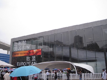 Het Belgisch-Europees Paviljoen werd ontworpen door Conix Architects. Zij kregen de voorkeur op Polo architects, BURO II & ARCHI+I, Samyn en Partners en Julien De Smedt. Conix Architects opteerde voor een bescheiden maar tegelijk open en flexibel gebouw. De op het eerste zicht sobere rechthoekige vorm wordt daarbij gecounterd door een erg transparante constructie uit glas en staal. Naar analogie met het centrale thema “Better City, Better Life” is de buitenkant opgebouwd uit recycleerbare materialen. Het complex is ook erg makkelijk af te breken en op te bouwen, zodat het na de expo nog voor andere doelstellingen zou kunnen gebruikt worden. Voorts kon het energiegebruik beperkt worden doordat enkel de noordelijke gevel van glas was en doordat zonnepanelen de keuken en het restaurant van natuurlijke energie wisten te voorzien.