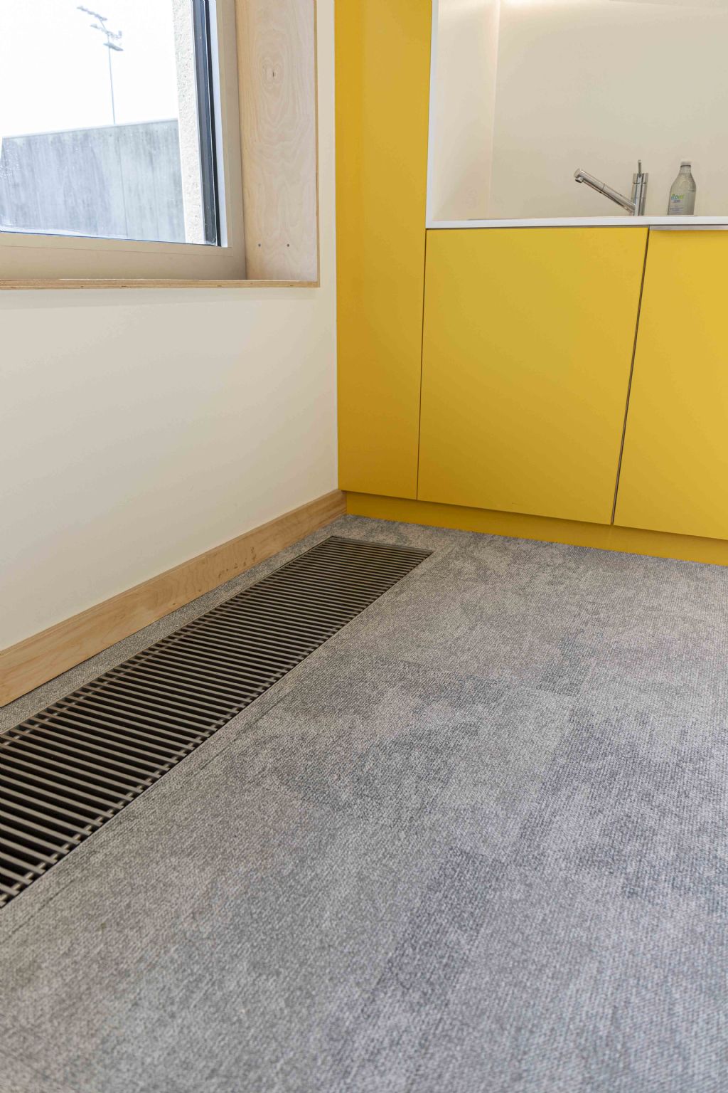 Voor HVAC viel de keuze op de Jaga Mini Canal-toestellen. “We vervaardigen deze volledig demonteerbare vloerinbouwoplossing voor 100 procent uit recycleerbare grondstoffen. Ideaal dus voor een circulair bouwproject”, aldus Steffert Vanneste, Sales Director BeLux bij Jaga. “Tijdens het fabricageproces streven we ernaar om zo weinig mogelijk primaire grondstoffen te gebruiken. Gevaarlijke stoffen laten we sowieso achterwege. Fungeren als partner van het Circular Retrofit Lab past dus perfect binnen de normen en waarden van ons bedrijf.”