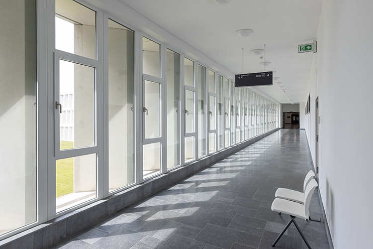 Ruimtelijk helderheid, ruimtelijkheid, veel daglicht, hoogwaardige materialen en visuele relaties tussen binnen en buiten zorgen voor een gevoel van normaliteit en comfort.