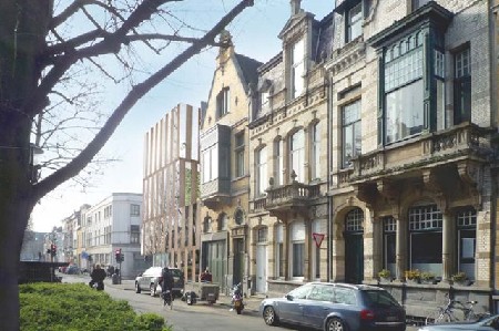 Daarnaast integreert het zich qua architectuur en qua schaal in zijn omgeving. Het eenvoudige hedendaagse volume kan zich meten met de sterke architectuur van de Victor Jacobslei, terwijl de houten gevelafwerking het geheel toch verzacht en een te schril contrast met de oudere huizen in de omgeving voorkomt. De kroonlijsthoogte is afgestemd op de andere hoekgebouwen. Dit zorgt ervoor dat het nieuwe pand de straat afwerkt en mee een poort vormt tot de Victor Jacobslei.