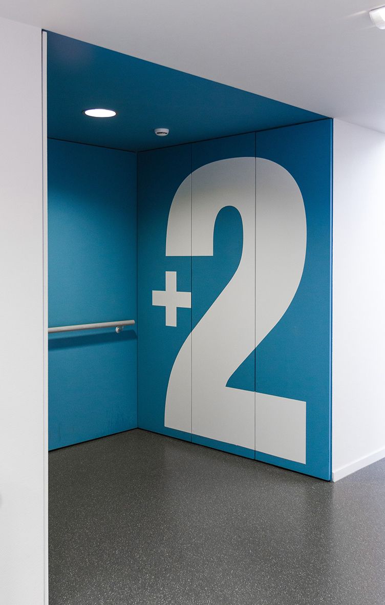 Op de twee verdiepingen bevinden zich de kamers en leefruimtes voor de andere rusthuisbewoners. Ook hier vormen gangen, zithoeken en leefruimtes een weefsel van pleintjes en straten, met ruimte voor verschillen tussen de leefgroepen. De geslotenheid van de rechtervleugel contrasteert met de openheid van de vleugel aan de andere zijde. Door afwisselend materiaalgebruik – rode baksteen, witte muurbepleistering en hout – wordt de eigenheid van de verschillende functies geaccentueerd.