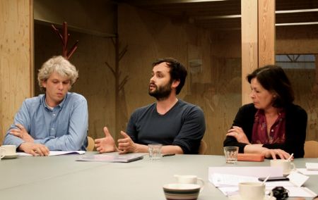Hilde Daem (r.), Johannes Robbrecht (m.) en Tom De Moor (l.). Hilde Daem: "De kruisbestuiving tussen de architectuur die we met ons bureau maken en de kunsten is nooit een gimmick geweest."