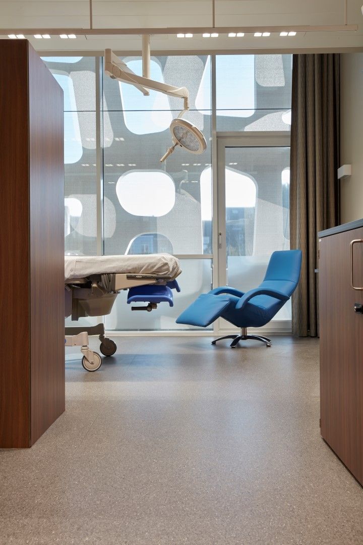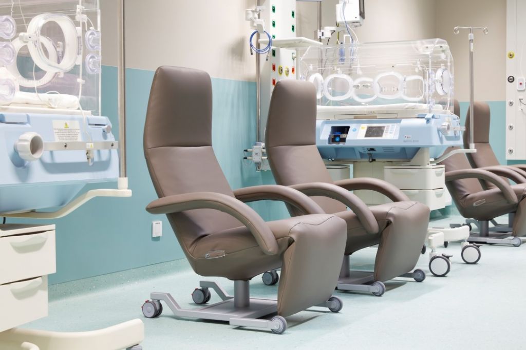 Maar ook in de dienst neonatologie is er naast elke couveuse ruimte voor een comfortabele relaxzetel. Deze relaxzetel zorgt voor de aanwezigheid van de ouders, wat de ontwikkeling van de baby ook ten goede komt. Tevens draagt de aangename houding van de zetels bij tot een betere kangoeroezorg en borstvoeding.