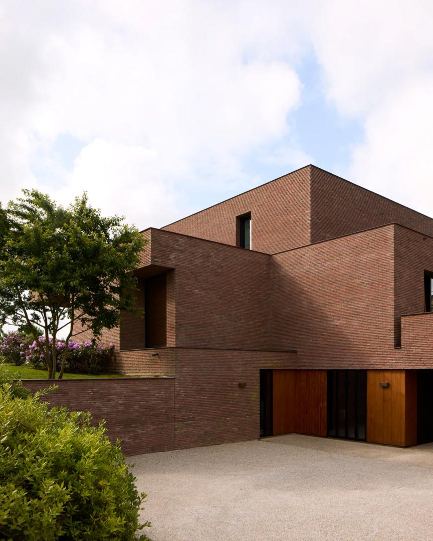Vanaf de eerste schetsen werd elke ruimte gepositioneerd in functie van het uitzicht op tuin en landschap. Grote openingen kaderen telkens een ander fragment van de omgeving, waardoor het huis als het ware meedraait met zijn context. Ook aan de buitenzijde sluit de architectuur aan bij die benadering: de combinatie van baksteen en houten schrijnwerk, geïnspireerd op Deense voorbeelden uit Kopenhagen, zorgt voor een ingetogen en tijdloze uitstraling die mooi veroudert in het Vlaamse landschap.