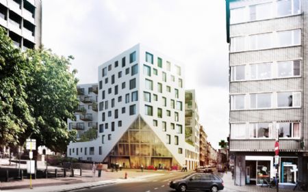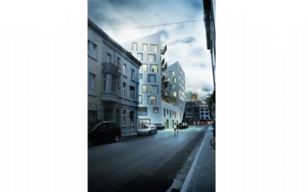 Voor een wedstrijd uitgeschreven door vastgoedontwikkelaar Alides heeft Julien De Smedt twee in het oog springende voorstellen geformuleerd. Op de prominente hoek tussen de Keizer Karelstraat en de Gebroeders Van Eyckstraat wil de internationale Brusselaar een exclusief appartementsgebouw neerzetten met tachtig luxeappartementen die maximaal profiteren van licht, lucht, uitzicht en toegang tot buitenterrassen.