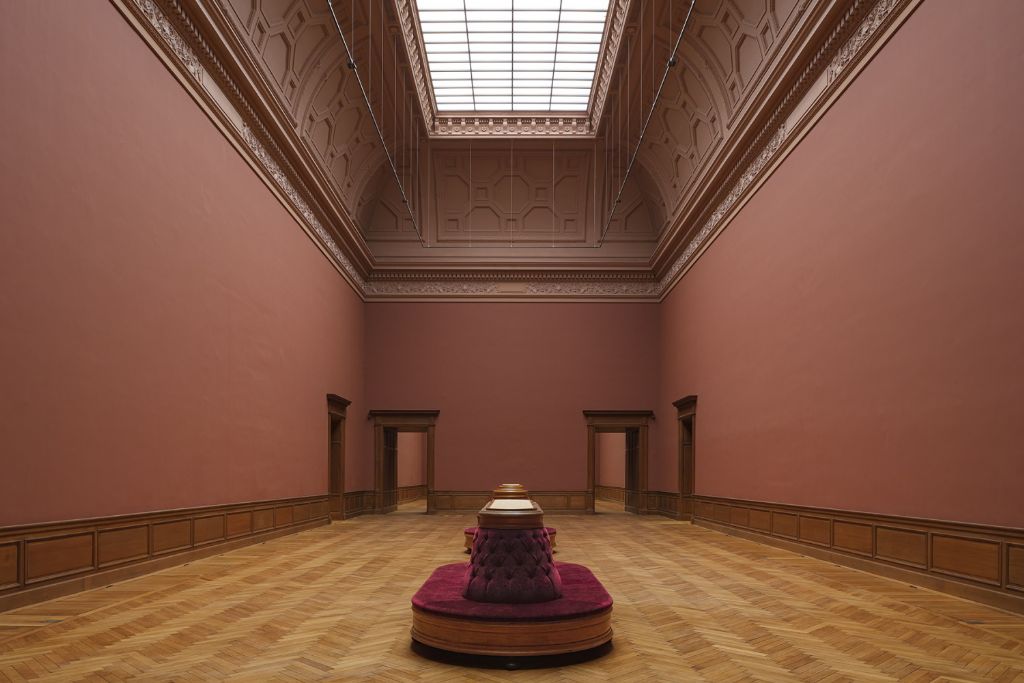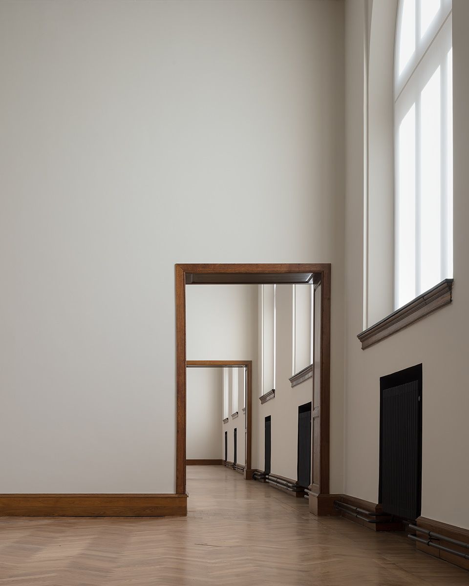 Die aanpassingen heeft KAAN Architecten nu rechtgezet door rekening te houden met de originele eigenschappen van het gebouw. Zo refereert het kleurenpalet, met donkerroze, groen en rood, naar de oorspronkelijke kleuren van de negentiende-eeuwse tentoonstellingszalen. Ook de eiken deuren, gipsen plafondornamenten en hoge pilasters dragen bij aan de klassieke, ouderwetse grandeur. De verbinding met de stad is er opnieuw dankzij de grote ramen op de eerste verdieping. Op de tweede verdieping zijn het daklichten die voor een aangename omgeving zorgen. Elegante sofa’s vervolledigen het geheel om uit te rusten tussen de grote meesters.