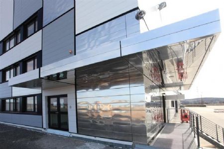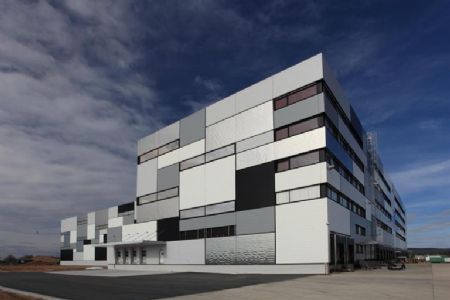 Op elkaar gestapelde dozen met verschillende afmetingen en kleuren: dat is het idee van Netzwerkarchitekten dat schuilgaat achter de vormgeving van de gevel van het nieuwe distributiecentrum van de Gries Deco Company in Niedernberg. Circa 26.500 m2 gevel werd bedekt met een dubbele wandbekleding: een FischerTHERM-stalen sandwichpaneel is gecombineerd met een FC-gevelsysteem van Kalzip.