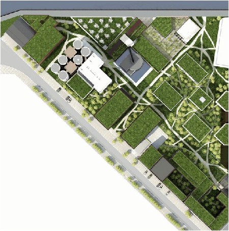 Het stedenbouwkundig plan, ontworpen door Jens Aerts, is een sterk kader voor de beoogde ruimtelijke en functionele ontwikkeling van de site. Het duidt de deelprojecten aan en definieert de enveloppen voor de bebouwing en voor de verschillende buitenruimtes. Om het plan op een architecturaal hoogstaande manier uit te werken, werden drie architecten en een landschapsarchitect voor de buitenruimte geselecteerd.