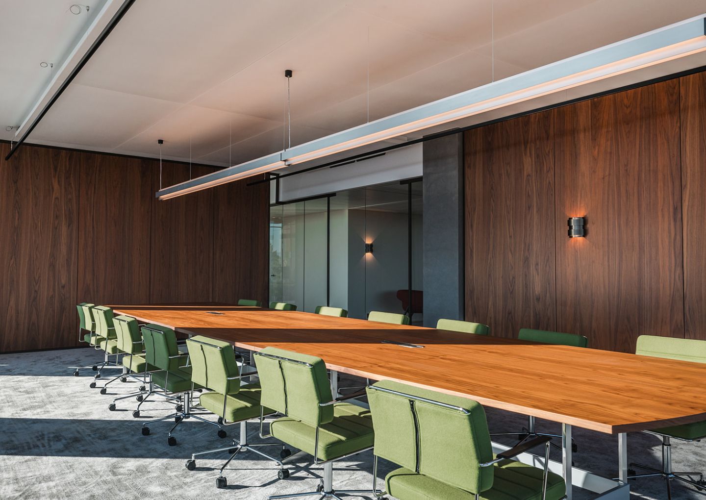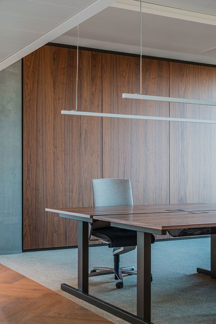 Het perfect samenspel van natuurlijk licht en de warme, luxueuze uitstraling van walnoot creëert een werkruimte die niet alleen functioneert maar ook inspireert.