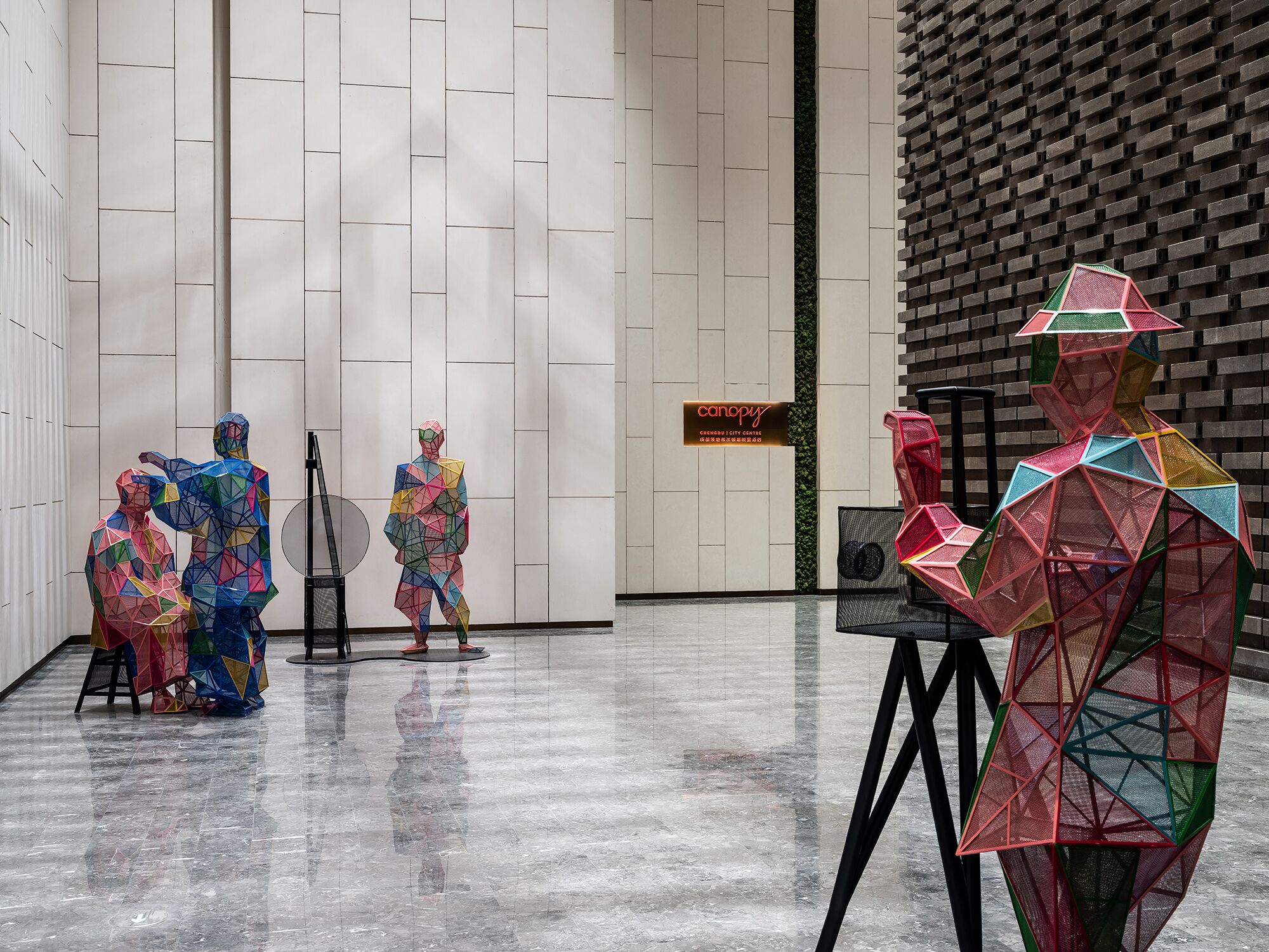 In de openbare ruimte staat vrije tijd centraal. Zowel opera als toneelstukken horen thuis in de cultuur van Chengdu. CCD en Hilton sloegen de handen in elkaar met artistiekelingen om die twee zaken ook te weerspiegelen in het interieur. Denk daarbij aan kunstwerken van organische silhouetten gemaakt van boeken.