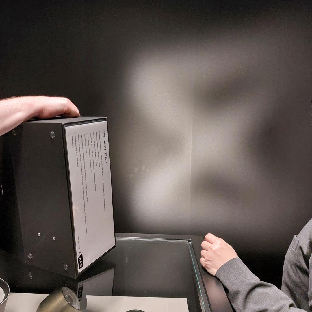 Een belangrijke uitdaging in kantooromgevingen is privacy. Waar de camera in musea gericht is op objecten, kijkt die in kantoren mogelijk naar mensen. Acuna verduidelijkt: “Daarom onderzoeken we momenteel alternatieve detectietechnologieën met een veel lagere resolutie, die toch voldoende input geven voor een correcte aanpassing van het lichtvlak.” Uniek aan de projector is bovendien dat alle aanpassingen elektronisch gebeuren via individueel aanpasbare pixels. Mechanische onderdelen zijn niet nodig, wat het systeem robuust, betaalbaar en onderhoudsvriendelijk maakt. De elektronisch aanpasbare lichtbron werd door het Delta Light Team ontwikkeld omdat er geen standaardoplossing bestonden die aan de eisen voldeden.
