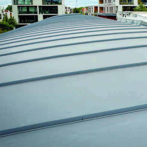Dakbedekkingsbedrijf Zolderse Dakprojecten uit Lummen rijfde het project binnen. Eerst werd het bestaande zinken dak volledig verwijderd. De 1,05 m brede RENOLIT ALKORPLAN dakbaan werd vervolgens mechanisch bevestigd op de houten ondergrond en volledig waterdicht afgewerkt. Door de flexibiliteit van deze kunststof dakbaan vormt de afdichting van dergelijke gebogen dakvormen geen enkel probleem. Zelfs de dakgoten werden mee bekleed. In een volgende stap werden er op het volledig waterdicht afgewerkte dak geëxtrudeerde PVC-P Design profielen gelast door middel van warme lucht. Louter decoratief, als een stijlvolle, extra touch met een knipoog naar het oude metaaldak.