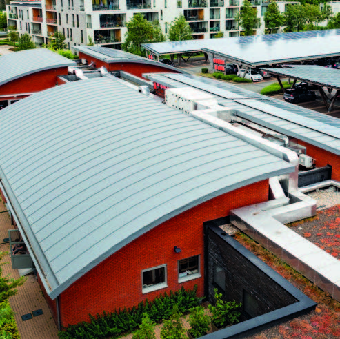 De flexibiliteit van de dakbaan in functie van het gebogen dak en de gewenste metaal look vormden een bijkomende troef. Maar ook de Broof (t1) brandveiligheid voor hellende daken en de vlamvrije installatie van deze RENOLIT dakbaan speelden bij de beslissing mee. Logisch, gezien de toepassing van het gebouw als kinderdagverblijf.