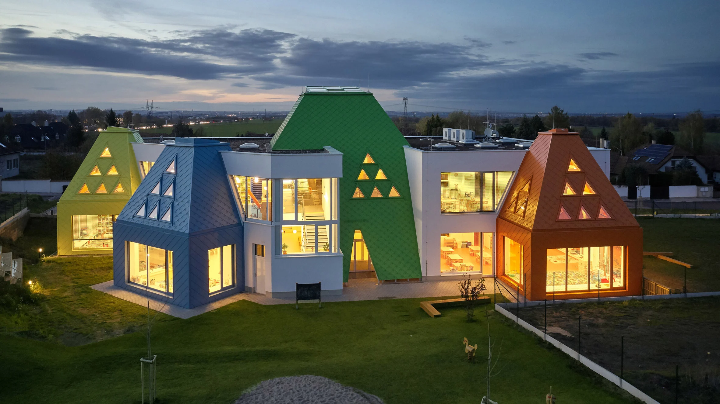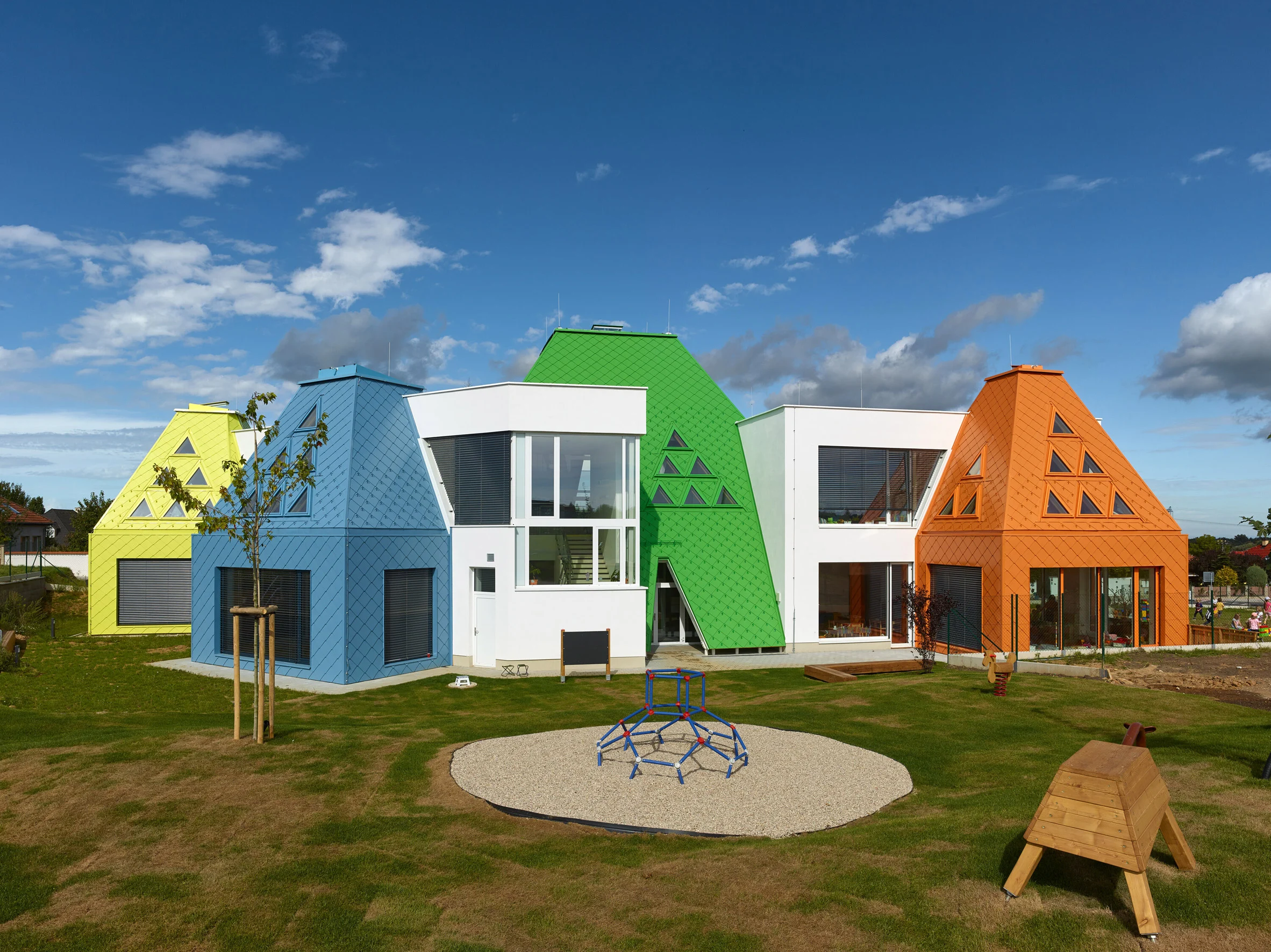 Felgekleurde volumes en hoekige vormen karakteriseren een nieuwe kleuterschool in de buurt van Praag. Met hun ontwerp wilden de architecten van het Tsjechische bureau Architektura de speelsheid uit de kindertijd weerspiegelen. De Větrník Kindergarten beschikt over een turnzaal, een tuin, klaslokalen en een speeltuin, verspreid over gekleurde blokken die vertakken vanuit een centrale witte structuur.