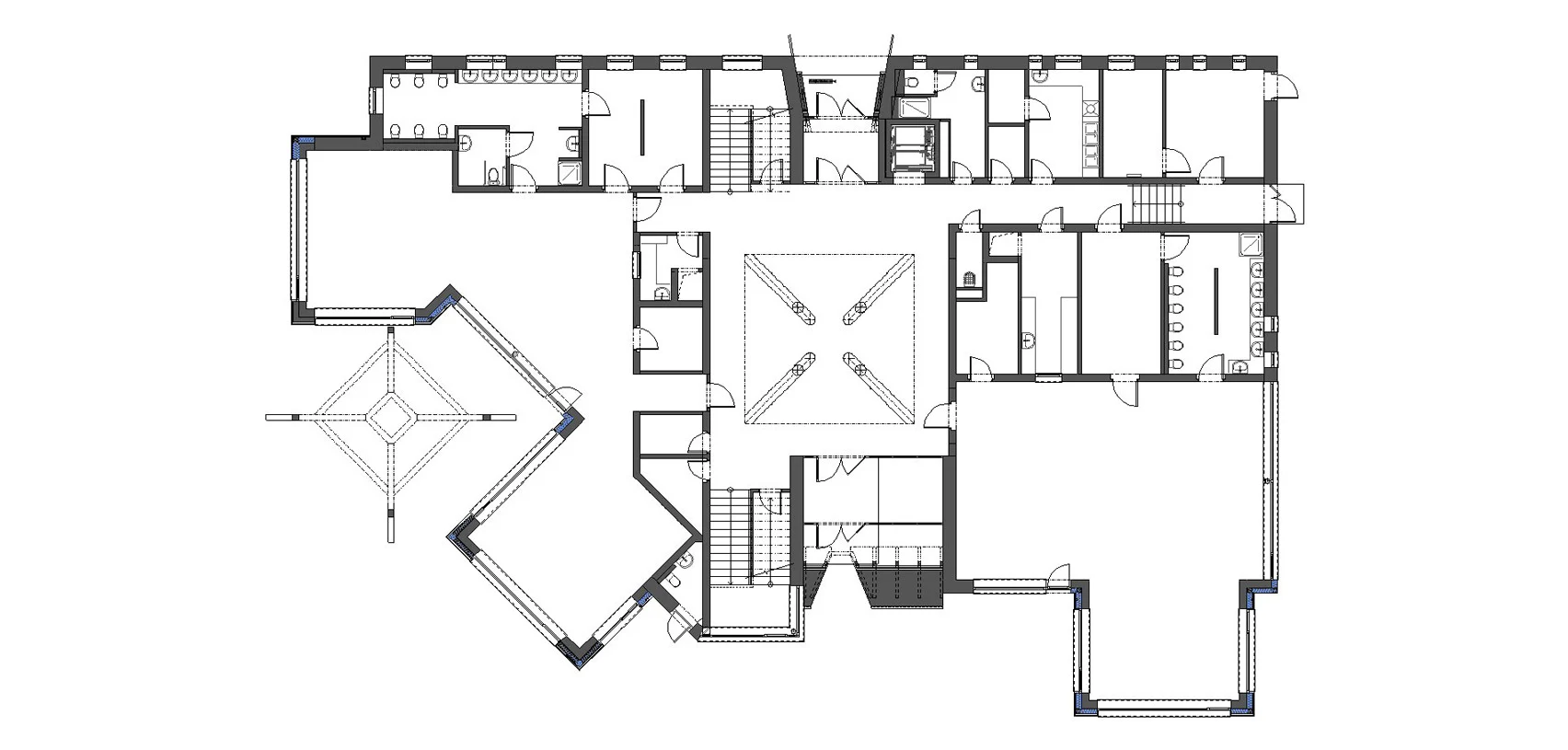 Het ontwerp is gebaseerd op de kindertijd, met een indeling die speelsheid en spontaniteit wil oproepen, en vormen die holen en tenten nabootsen. "De grillige plattegrond is gebaseerd op de afwezigheid van geometrie in de geest van het kind, een andere volgorde, speelsheid en spontaniteit", vertelt Architektura-directeur David Kraus.