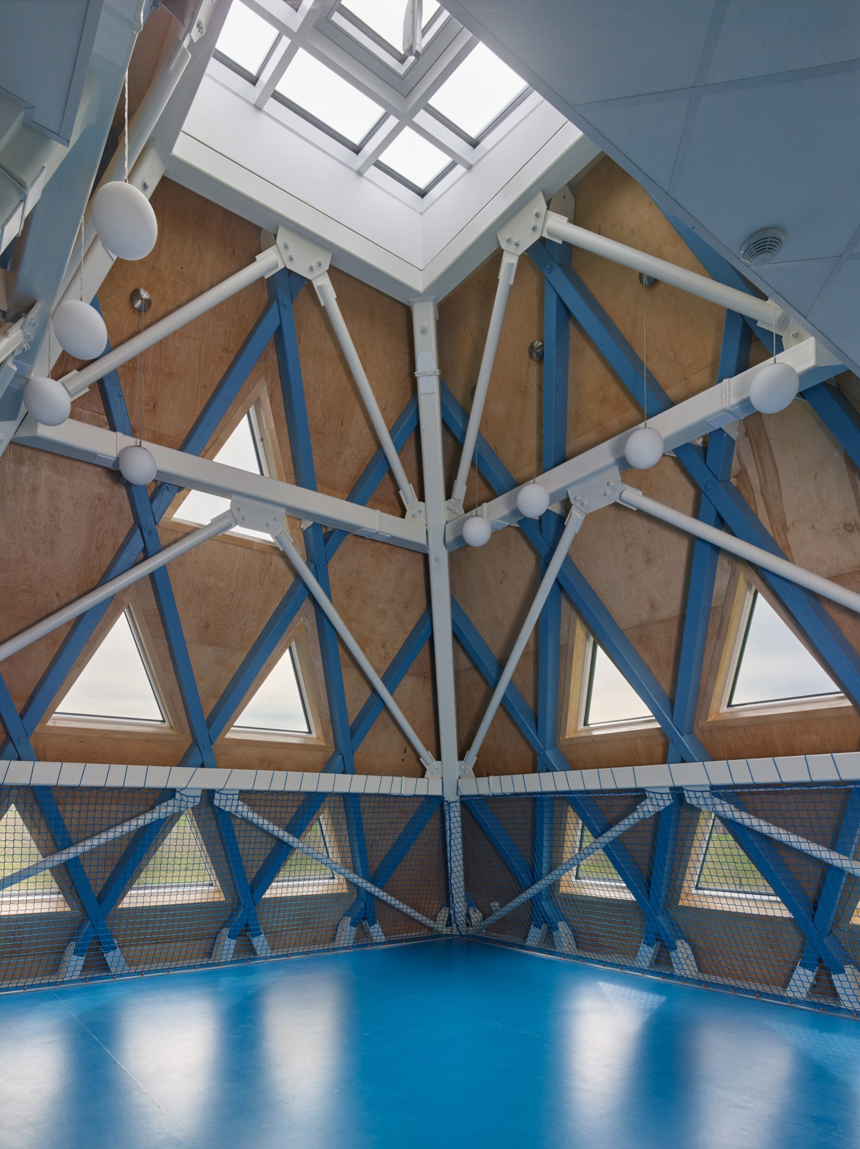 Via de inkom worden bezoekers en kinderen ontvangen in een atrium, dat zich in het witte middenblok bevindt. Hier zijn ook de kantoren en andere praktische voorzieningen. Een groot speelnet overspant het atrium, ondersteund door boomstammen. Het gebied eronder dient als een gemeenschappelijke ruimte die plaats biedt voor muziek, theater en tentoonstellingen.