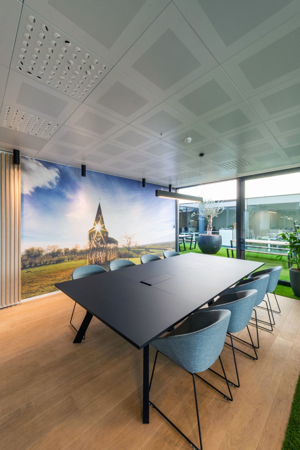 Klaarchitectuur ontwierp een kantoorgebouw in Borgloon dat erop gericht is om de omliggende natuur zoveel mogelijk binnen te laten. Kantoormedewerkers behouden binnen de voeling met de glooiende fruitplantages die het bedrijf omringen en genieten buiten van een rustige en groene sfeer, weg van alle bedrijvigheid.