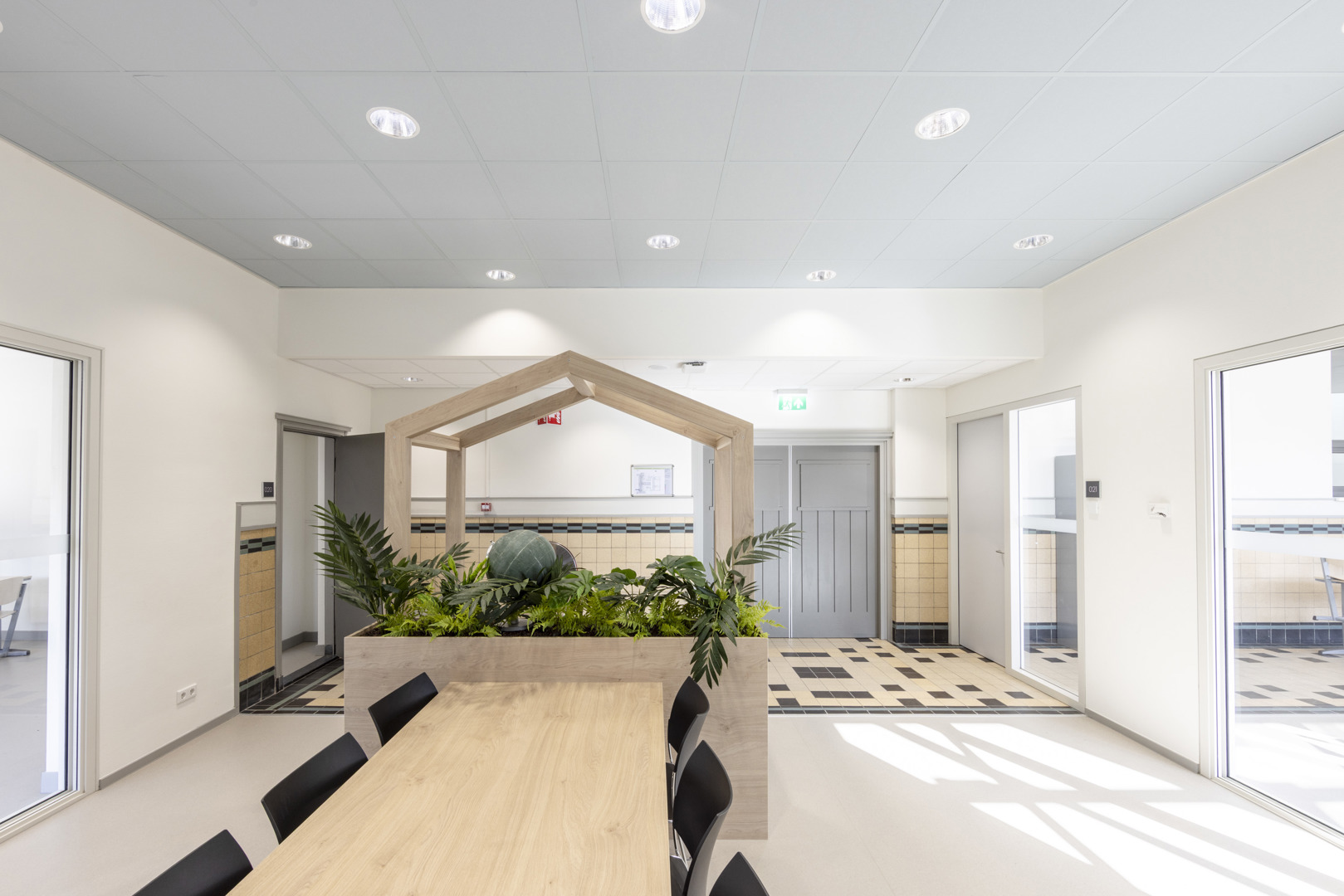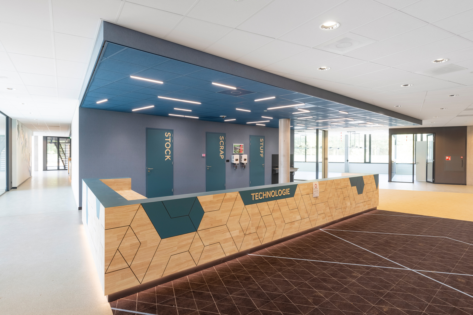 Onderzoeken tonen aan dat kleur zowel psychologische als fysiologische reacties oproept. In een onderwijsomgeving heeft dit directe impact. Blauwtinten kalmeren, rood stimuleert, geel roept een gevoel van energie op. Door deze kleuren bewust in te zetten, kunnen architecten activerende, rustgevende of sociale zones creëren. Dat maakt kleur tot een volwaardig ontwerpinstrument binnen het bredere streven naar gezonde leeromgevingen.