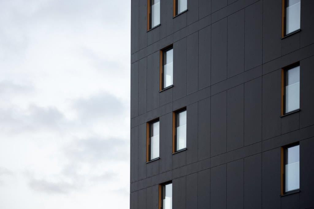 Dat de EQUITONE-panelen van Eternit de gevels van Residentie Ijzerparel sieren, is allerminst toeval. Ze zijn ontwikkeld met en voor architecten, met de bedoeling om hen een zo groot mogelijke ontwerpvrijheid te bieden. De in de massa gekleurde EQUITONE-panelen hebben een maximale grootte van 1,25 op 3 meter, maar kunnen in allerlei verschillende vormen of formaten verzaagd worden en kunnen indien gewenst zelfs doorboord of bedrukt worden. “Bovendien zijn ze beschikbaar in diverse toepassingen, die voor ieder wat wils bieden”, zegt Jan Motte, Account Manager EQUITONE bij Etex (Eternit). “In het Ijzerparel-project is er gekozen voor een combinatie van [tectiva] en [pictura]. De [tectiva]-panelen garanderen een uniek natuurlijk aspect, terwijl de [pictura]-panelen over een extra geharde, kleurstabiele topcoating beschikken waarmee je frisse, kleurrijke accenten in het gevelbeeld kan integreren. Er zijn tevens verschillende plaatformaten gebruikt, en de panelen zijn zowel verlijmd als mechanisch bevestigd. In het Ijzerparel-project komen dus heel wat esthetische mogelijkheden van het EQUITONE-gamma aan bod.”