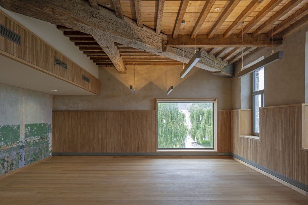 Om de charme en de rijkdom van het complex in stand te houden en zelfs te versterken, accepteerden de architecten de onvolkomenheden die de vele verbouwingen en leegstand met zich brachten. “Er kwam dus geen reconstructie van de originele toestand. De sporen van latere verbouwingen, toevoegingen en verval bleven zowel buiten als binnen zichtbaar”, begint architecte Mechthild Stuhlmacher te vertellen.