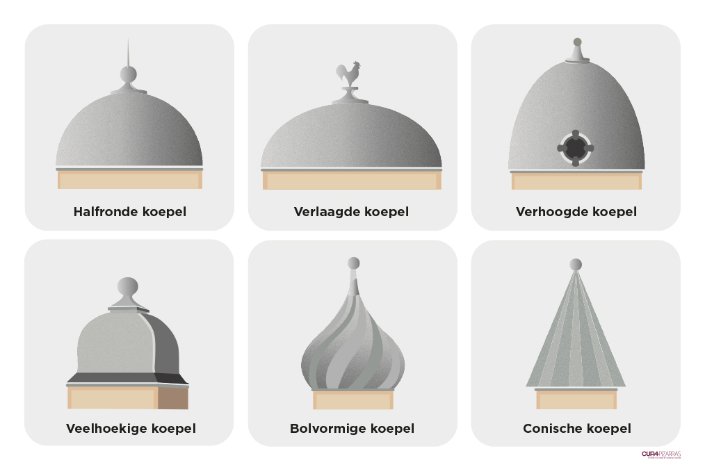 De binnenkant van de koepel wordt de dakkoepel genoemd. Van onderaf gezien heeft de toeschouwer de indruk zich op een bijna magische plek te bevinden. Aan de buitenkant kunnen de koepels worden bedekt met verschillende materialen. Een van de meest gebruikte is natuurleien.