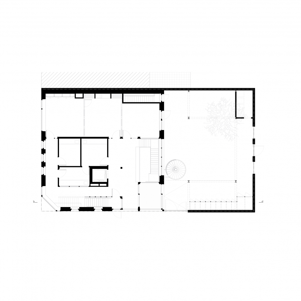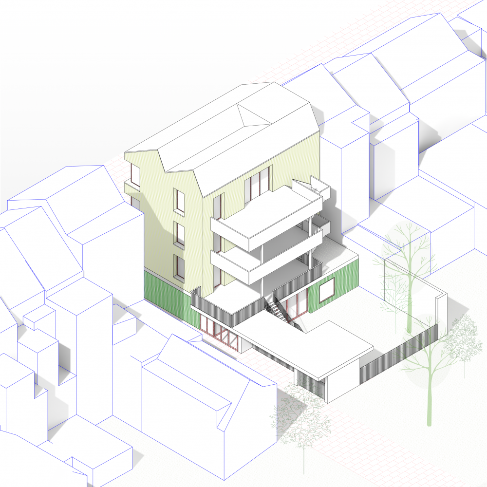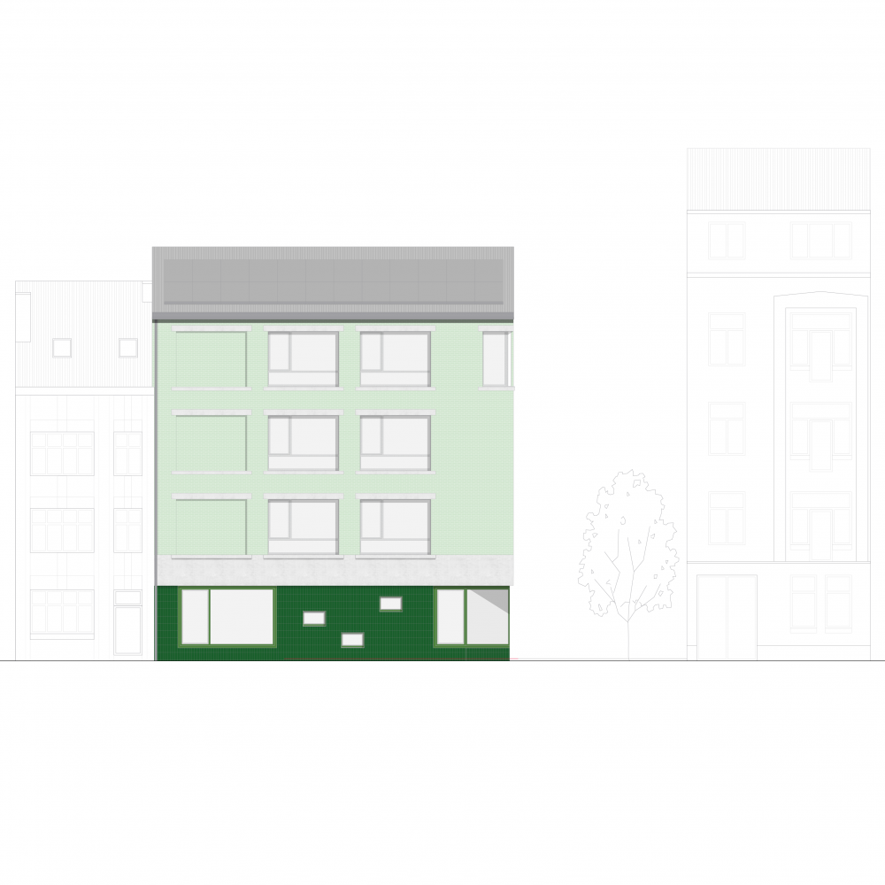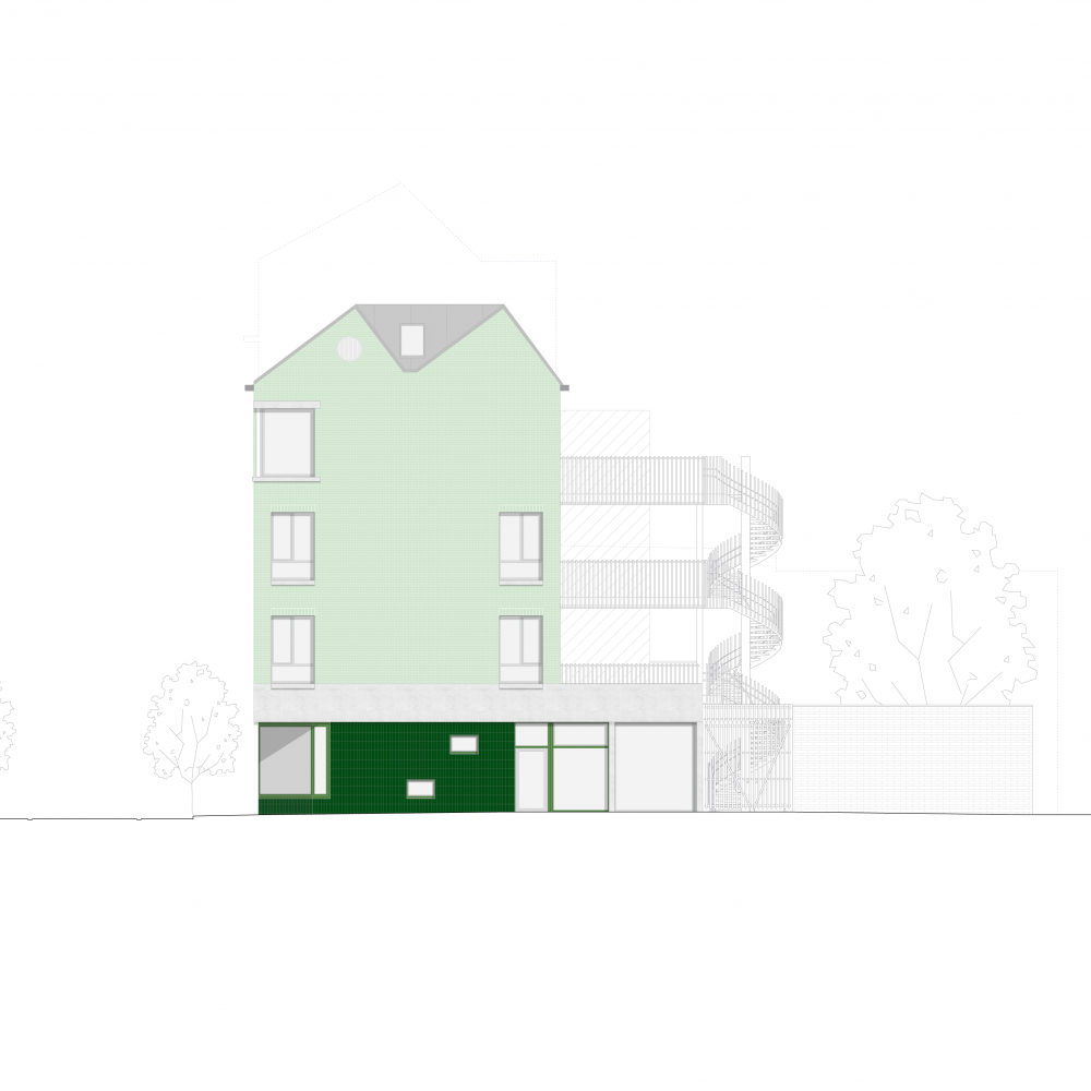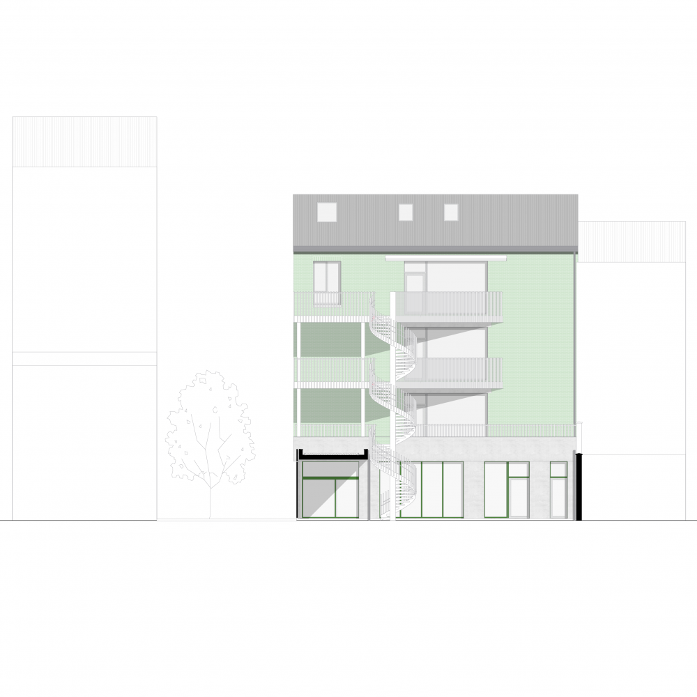 De nieuwe infrastructuur telt vier bovengrondse bouwlagen en één ondergrondse laag. KPW Architecten zocht naar een balans tussen de bestaande gevelrij in de Lessenstraat en de zachte, nieuwe doorsteek die het project structureert. Grote raampartijen en de positionering van functies langs zowel straat als doorsteek maken het gebouw maximaal zichtbaar en toegankelijk. Het resultaat is een herkenbaar en sociaal ankerpunt in de wijk, dat zich naar twee zijden opent en de dialoog aangaat met zijn omgeving.