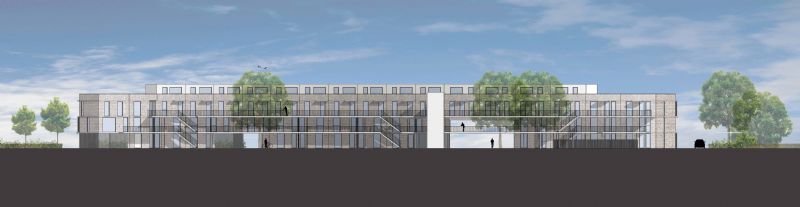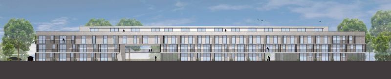 De combinatie van een boogvormig bouwvolume en maximaal groen op het terrein zorgt voor een geborgen groen karakter. Er komen doorgangen doorheen het bouwvolume. Deze worden transparant gehouden op het gelijkvloers, waardoor er uitzicht is op het groene binnengebied.