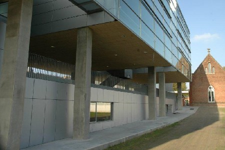 Behalve de gerestaureerde Cloquetgebouwen, vormt de nieuwbouw met zicht op de geklasseerde kloostertuin een belangrijke eyecatcher van dit project. Deze nieuwbouw is opgevat als een repetitieve reeks van transparante, glazen volumes langs twee haakse circulatieassen die een hedendaagse laag toevoegen aan deze historisch gegroeide site.