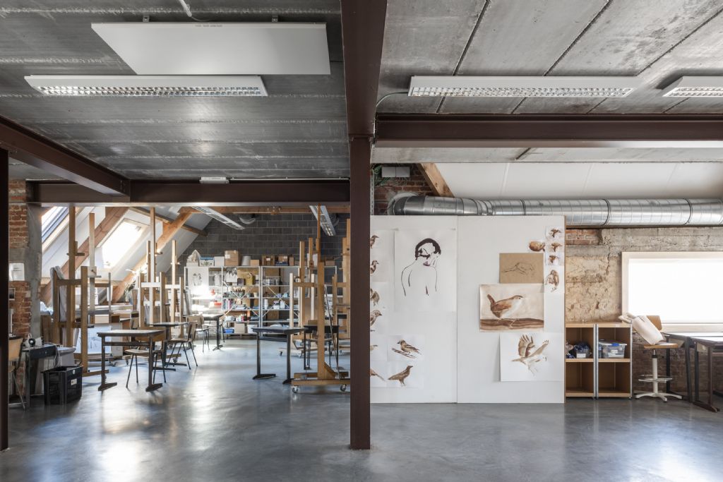 Een vernieuwde vorm van leslokalen en budgetbeheer waren de grootste uitdagingen voor het volledige bouwteam. Tegelijk vormen zij ook de basis van het ontwerp en zorgen ze voor een uniek en artistiek resultaat. Het ombouwen van één grote turnzaal naar drie bouwlagen met ateliers vroeg om de nodige creativiteit.
