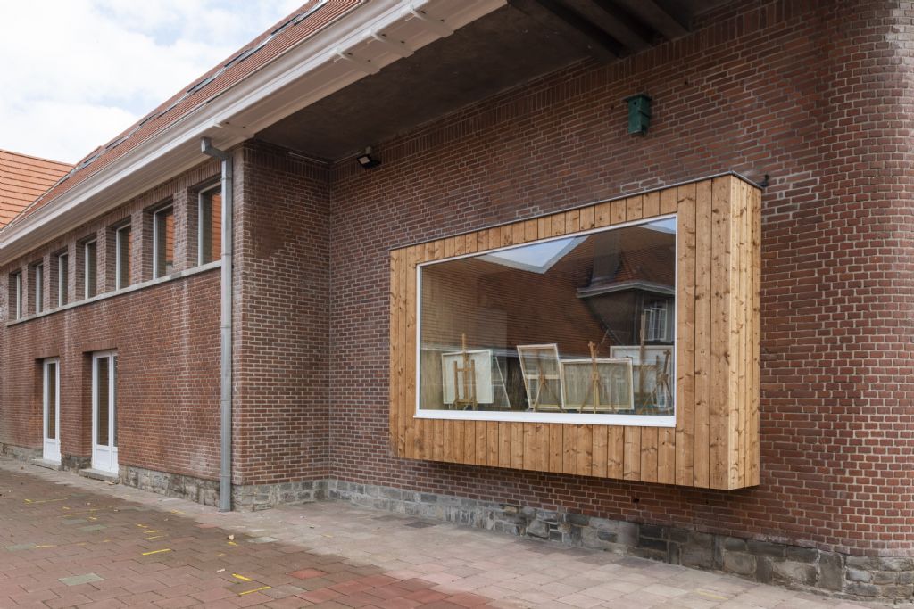 De voormalige gemeenteschool in Harelbeke is omgevormd tot de stedelijke academie voor beeldende vorming. De kunstacademie had nood aan uitbreiding en meer atelierruimtes. De kunstzinnige functie van het gebouw vormde de leidraad voor het ontwerp van Wielfaert Architecten.