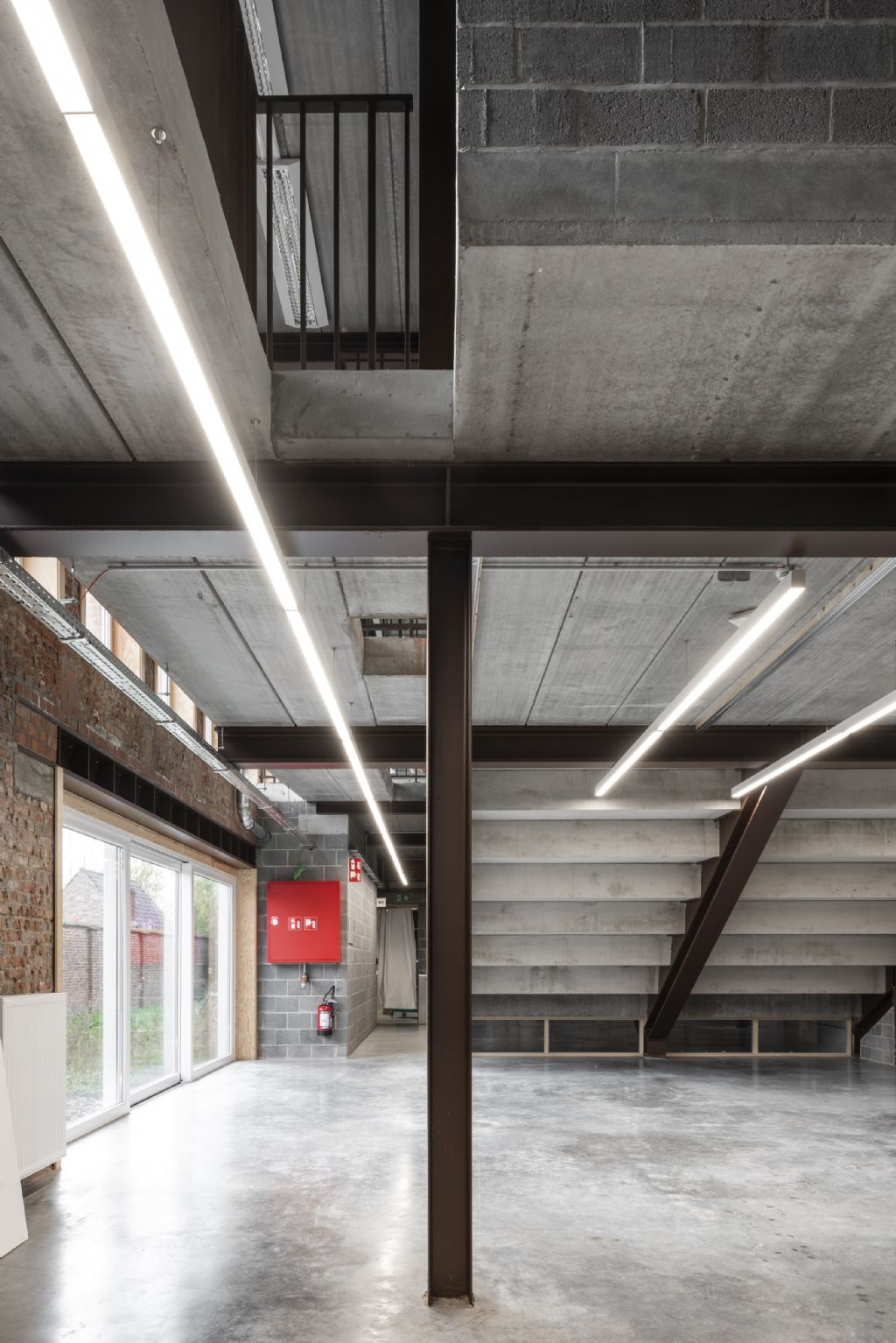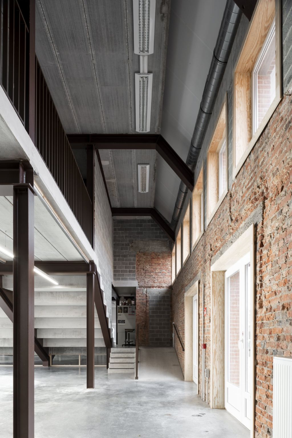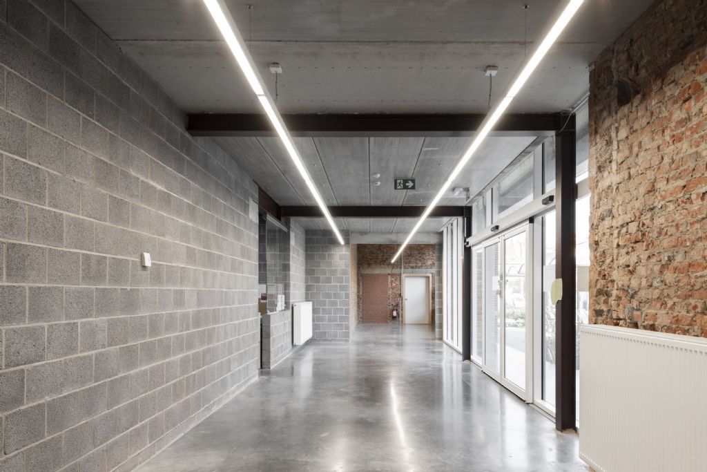 De academie kreeg een industriële look. De bestaande muren werden casco gezet en er werd een gepolierde betonvloer voorzien. De buitenschil van het gebouw werd behouden en binnen werd een staalstructuur voorzien om de verschillende verdiepingen te dragen. De nieuw te metselen muren werden bewust uitgevoerd in betonstenen. Naast de look was budgetbeheer even belangrijk.